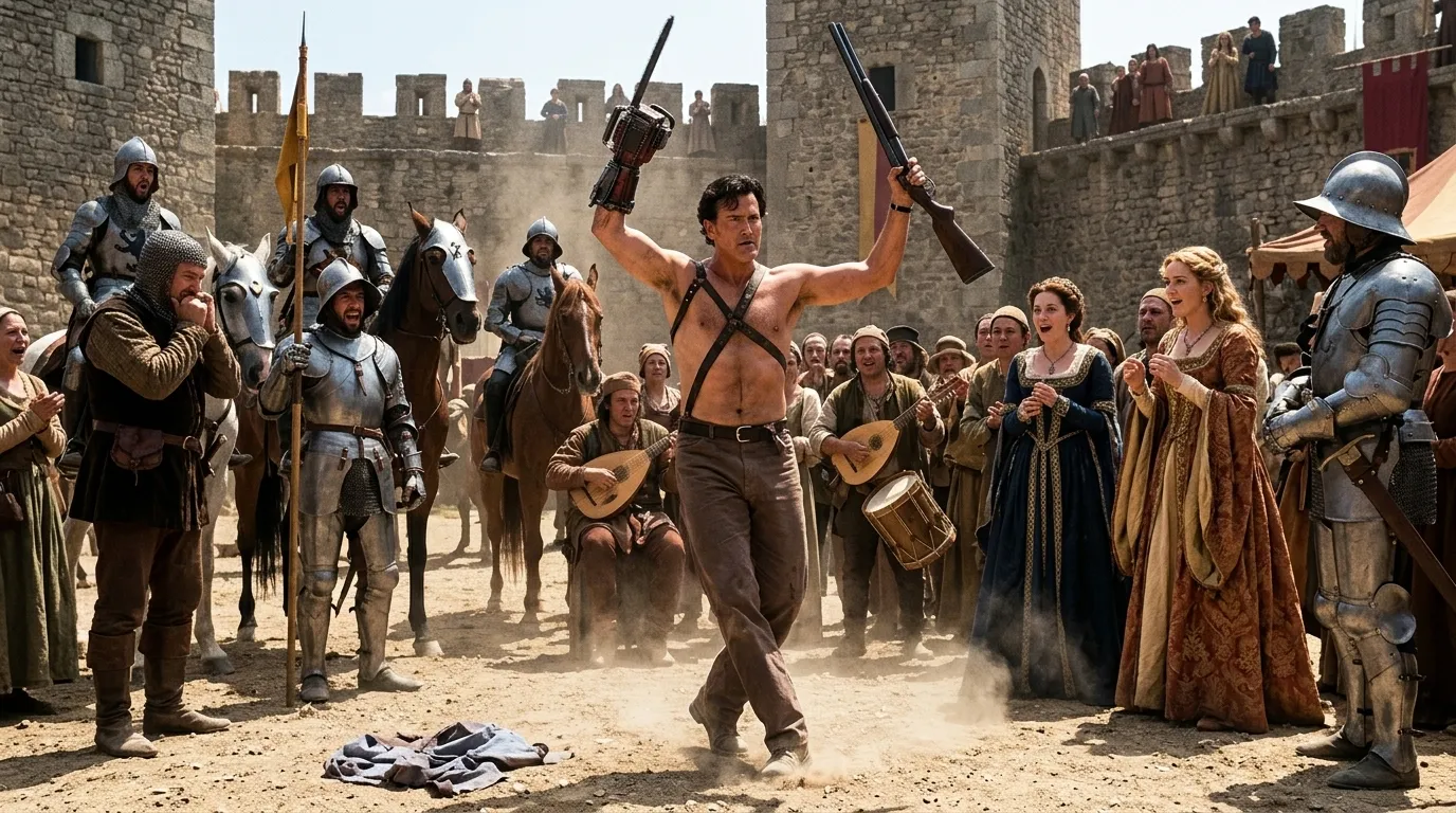 Ash dancing like diva.He drop his shirt and dancing to the guards and ladies around in medieval aga