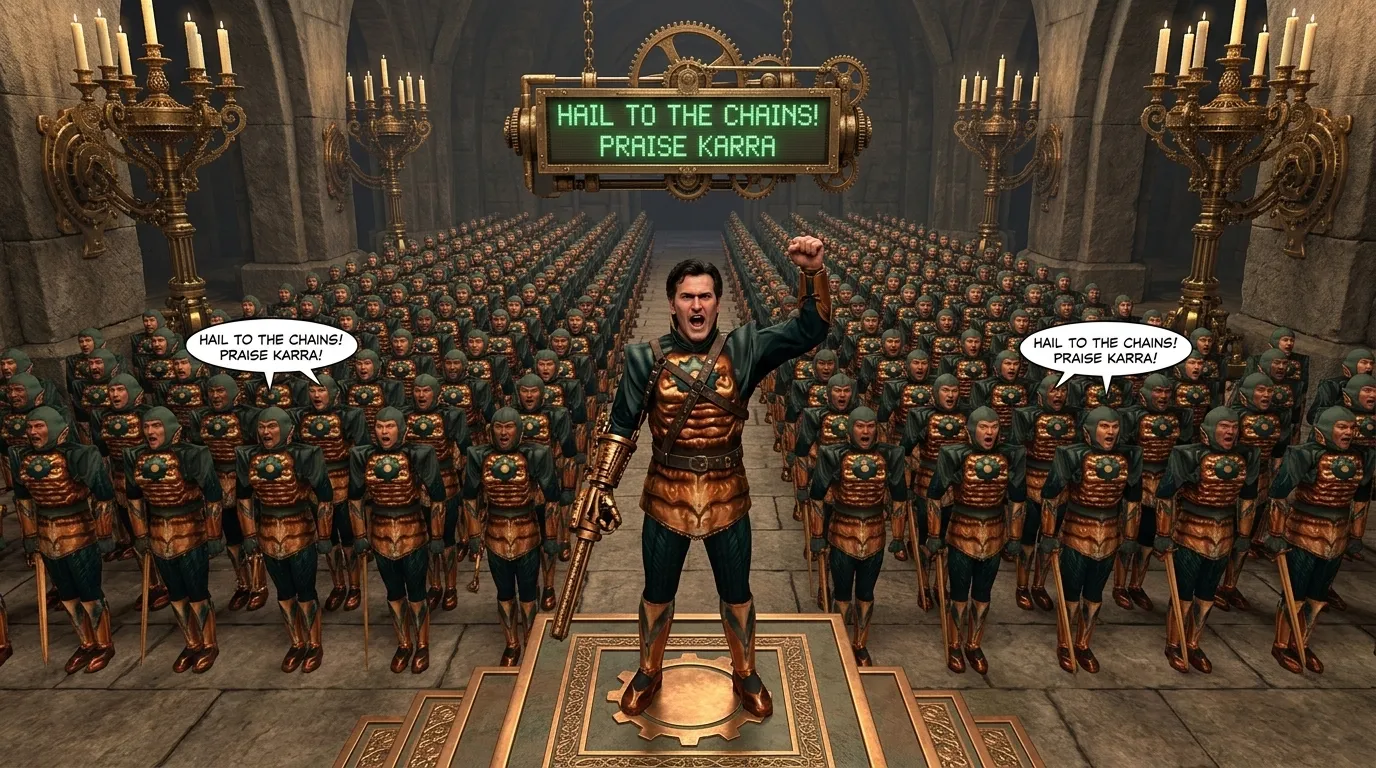 Mechanist army with Ash Williams as Mechanist leader.Chanting