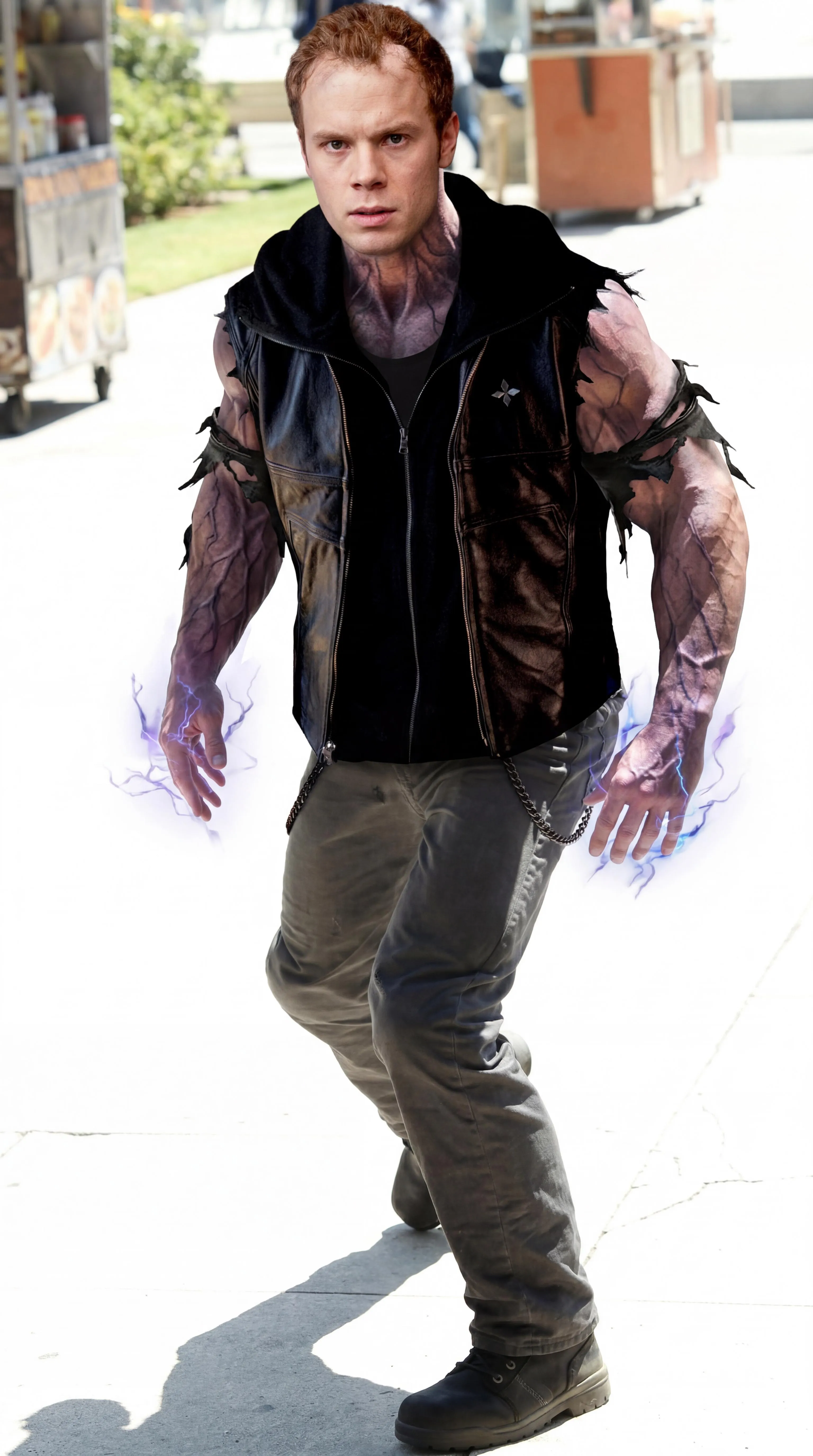 Dr. Rudolph "Rudy" Jones a.k.a. the Parasite (portrayed by Brendan Fletcher) in Smallville and Carl "Crusher" Creel a.k.a. the Absorbing Man (portrayed by Brian Patrick Wade) in the Marvel Cinematic Universe (M.C.U.) interchangeably combine together into each other as one to become Rudy Creel a.k.a. the Parasite Man, facial and physical features alike (no names seen). No sensitive information or guidelines violating content seen or involved.