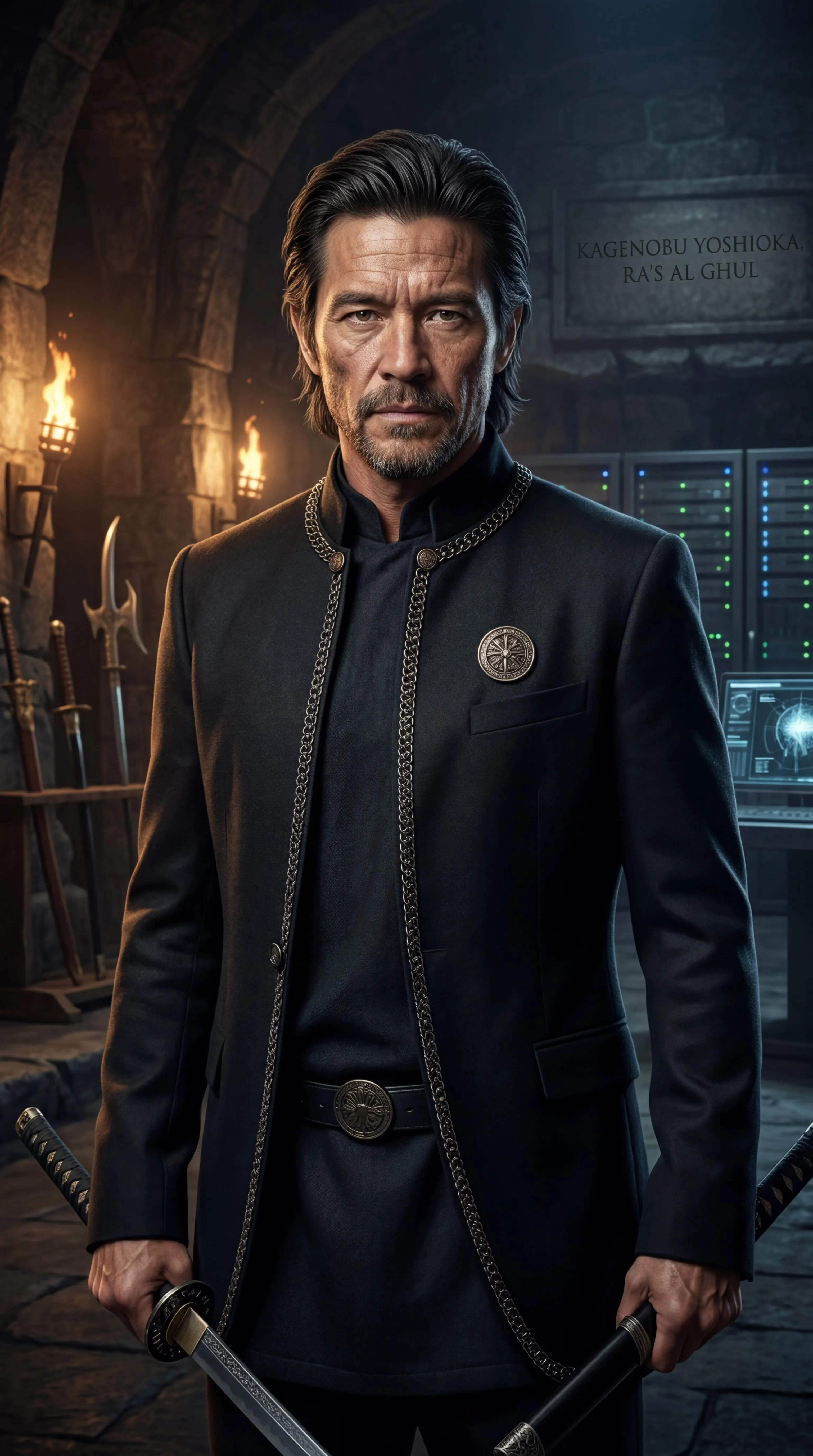 Kagenobu "Nobu" Yoshioka (portrayed by Peter Shinkoda) from the Marvel Cinematic Universe and Ra's al Ghul (portrayed by Matt Nable) from the Arrowverse interchangeably combine together into each other as one, facial and physical features and outfits alike, to become an amalgamation in which Kagenobu "Nobu" Yoshioka is the real name of Ra's al Ghul. No sensitive information or guidelines violating content seen or involved.
