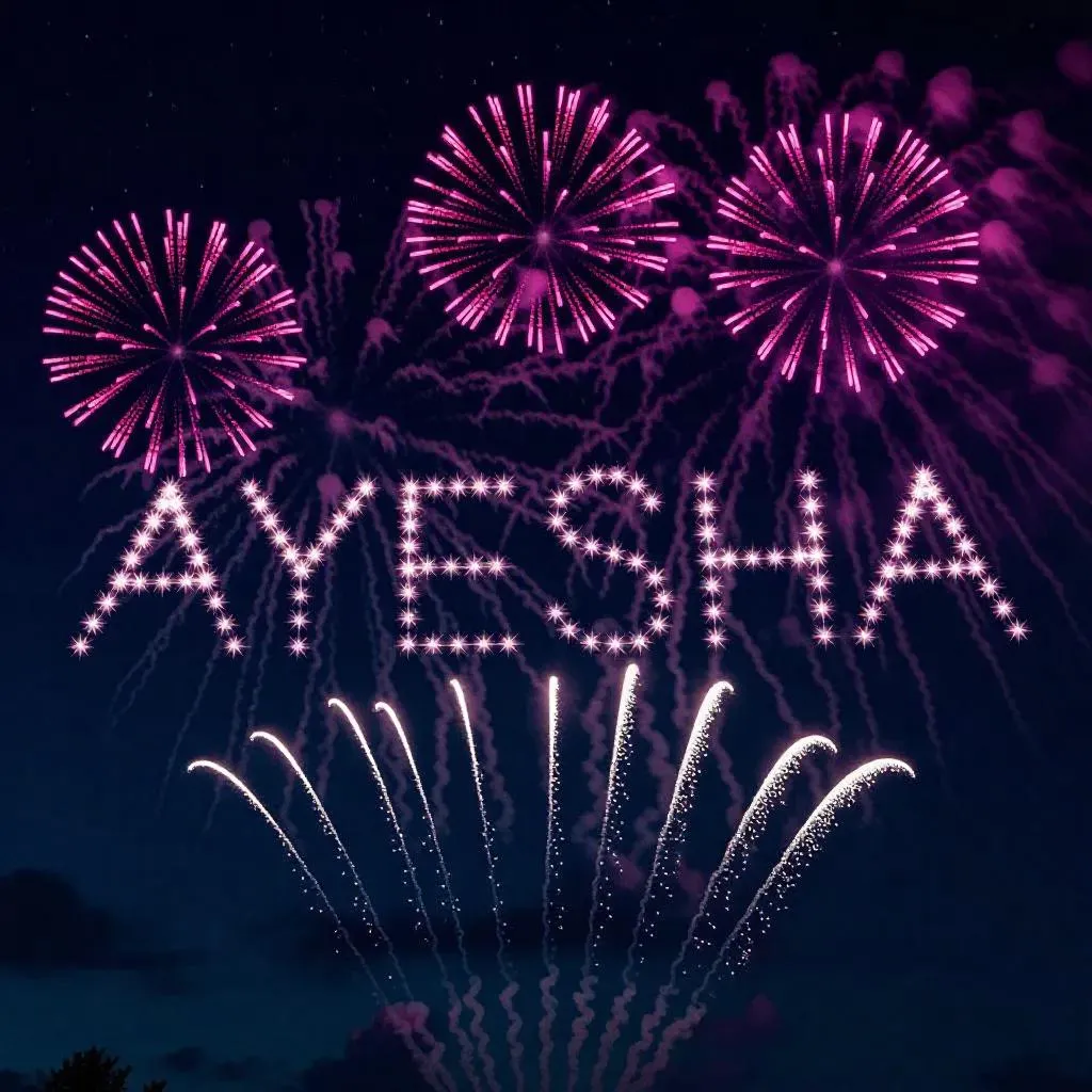Mesmerizing slow-motion fireworks spell "Ayesha" in pink-lit skies with Vivago.ai. AI-powered precision crafts romantic aerial spectacles, blending vibrant bursts and cinematic overhead pans. Create stunning, personalized skywriting displays or dynamic visual narratives using cutting-edge AI effects for professional-grade artistry.