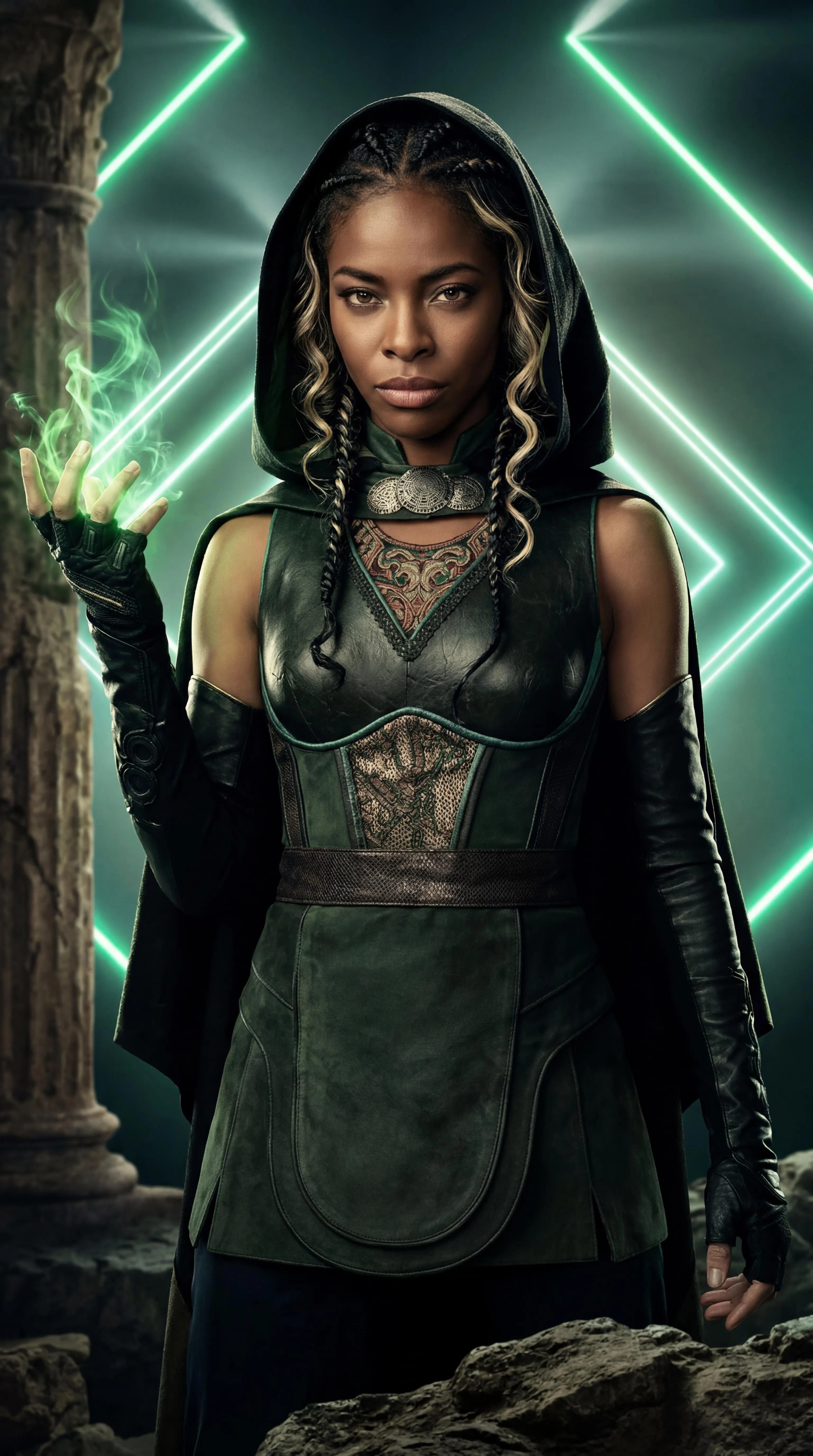 Sylvie Laufeysdottir a.k.a. Enchantress (portrayed by Sophia Di Martino) from the Marvel Cinematic Universe (M.C.U.) and Dr. June Moone a.k.a. the Enchantress (portrayed by Samantha Liana Cole) from the Arrowverse interchangeably combine together into each other as one, facial and physical features alike, to form the Enchantress. No sensitive information or guidelines violating content seen or involved.