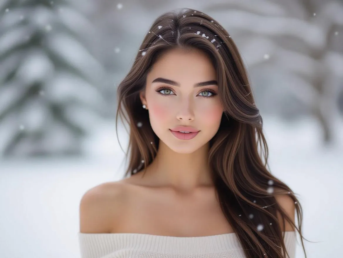 Generate hyperrealistic fantasy portraits with AI. Create ethereal winter goddesses featuring porcelain skin, icy crystal garments, and snow-dusted hair. Inspired by Art Nouveau, Pre-Raphaelite, and cinematic fantasy art for painterly, high-end realism. Transform your vision into professional AI imagery.