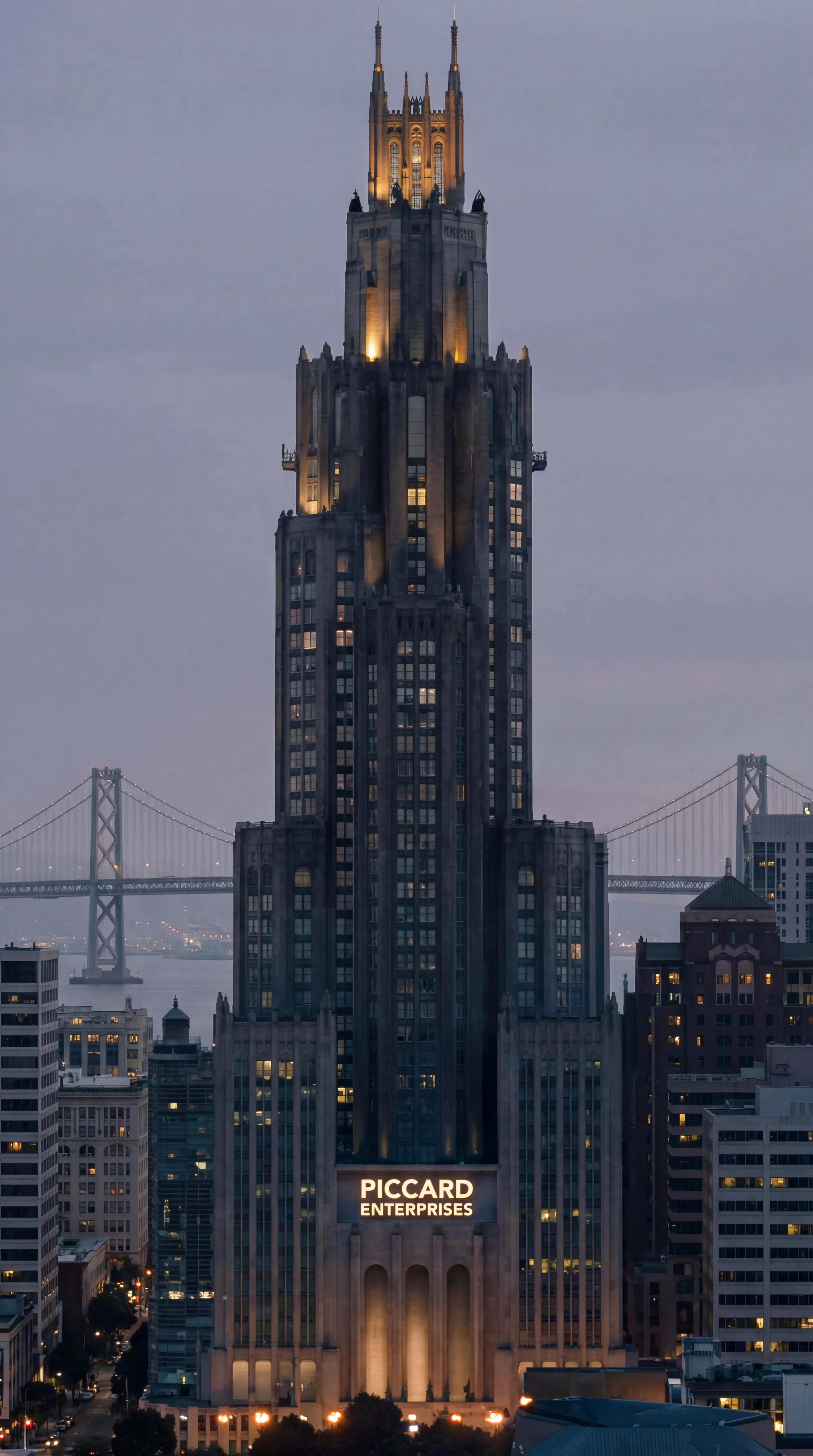 Create an Arrowverse-inspired Wayne Tower visual with the Piccard Enterprises logo in Oakland using Vivago.ai. Transform this unique DC/Star Trek mashup concept into striking AI images or videos. Our AI-powered visual tools make reimagining famous locations fresh and easy. Generate professional-grade alternate reality scenes effortlessly.