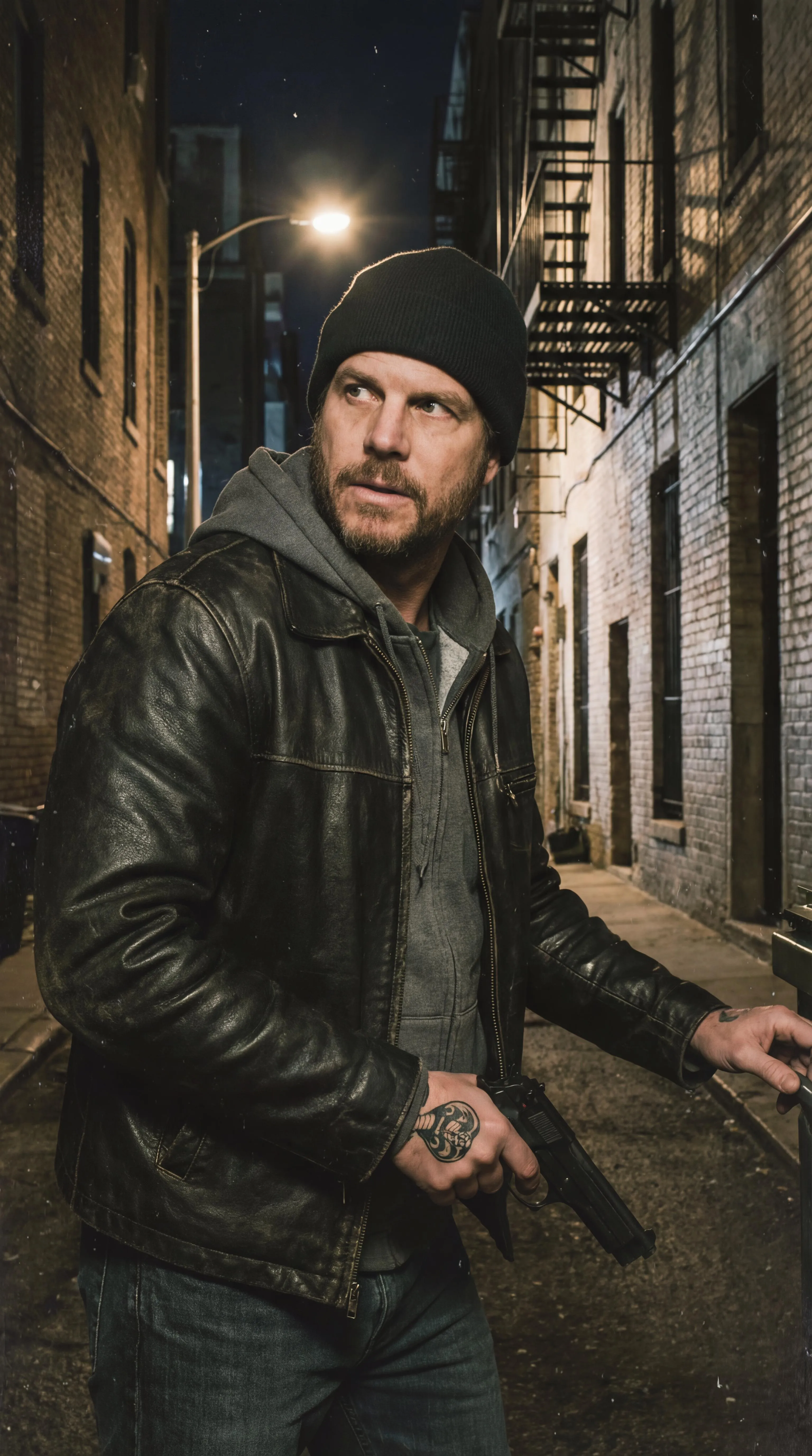 Transform text into AI images with Bill Paxton as James Cameron's Spider-Man burglar, featuring his iconic cobra wrist tattoo. Create unique movie character visuals using Vivago.ai's powerful AI image generation tools.