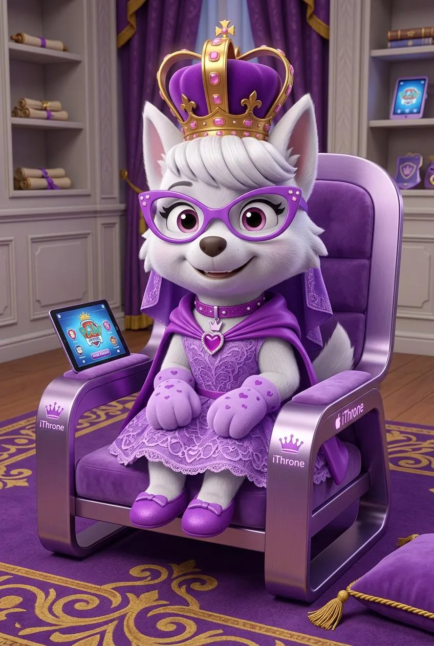 A fluffy, Jellycat-style art truck with soft, rounded edges and large, expressive eyes is parked beside a vibrant art studio in a creative, colorful town. Its body is covered in plush, magenta fur, with white paws and a tiny, adorable paint palette on top. The clear blue sky above is dotted with fluffy clouds, and soft, warm sunlight filters through, casting gentle shadows and highlighting the truck's cuddly texture. The scene exudes a playful, whimsical charm, perfect for a children's storybook.