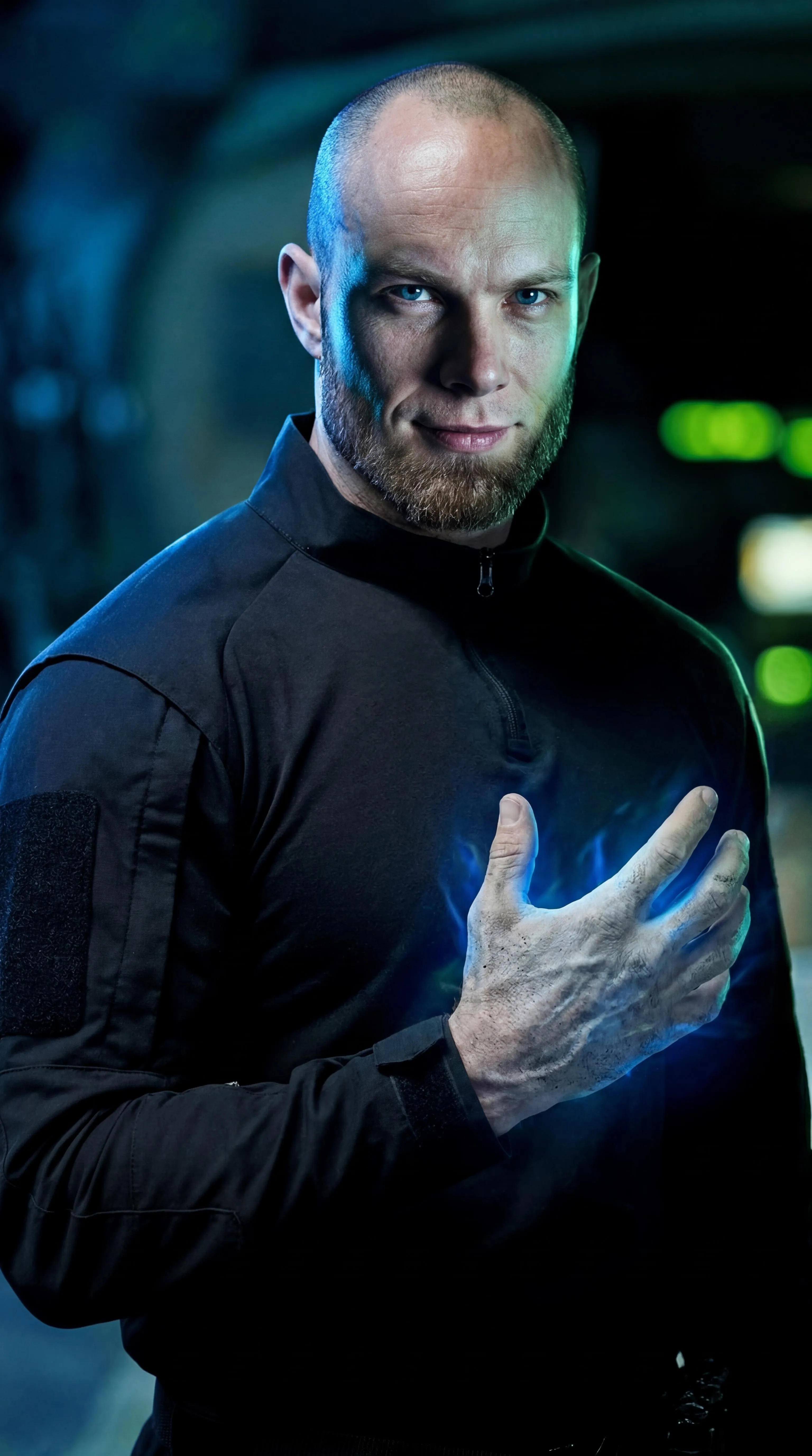 Dr. Rudolph "Rudy" Jones a.k.a. the Parasite (portrayed by Brendan Fletcher) in Smallville and Carl "Crusher" Creel a.k.a. the Absorbing Man (portrayed by Brian Patrick Wade) in the Marvel Cinematic Universe (M.C.U.) interchangeably combine together into each other as one to become Rudy Creel a.k.a. the Parasite Man, facial and physical features alike. No sensitive information or guidelines violating content seen or involved.