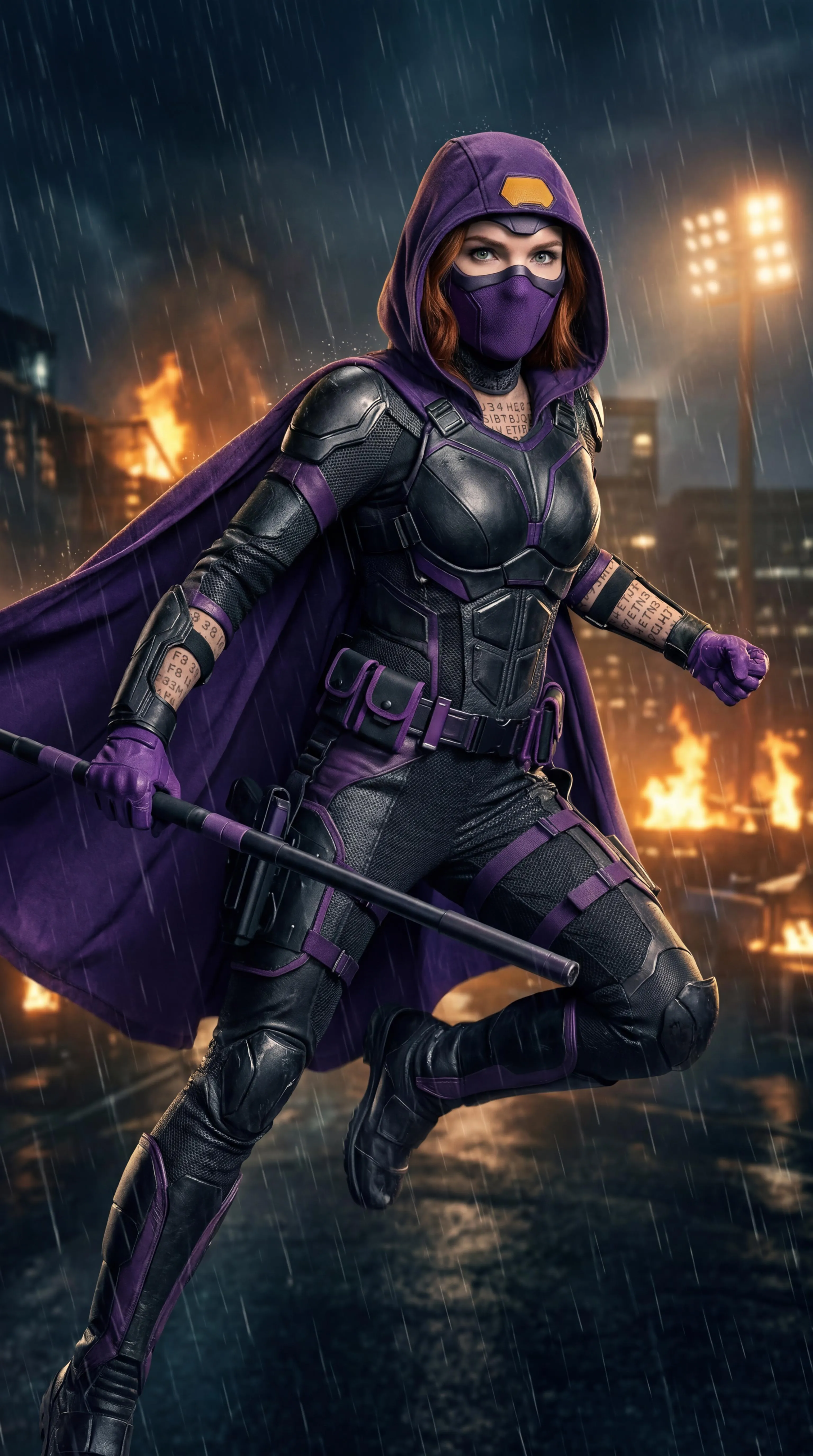 Spoiler's suit from the comics is translated into the visual style of the realistic visual aesthetics of Stephanie Brown from the Arrowverse. No sensitive information or guidelines violating content seen or involved.