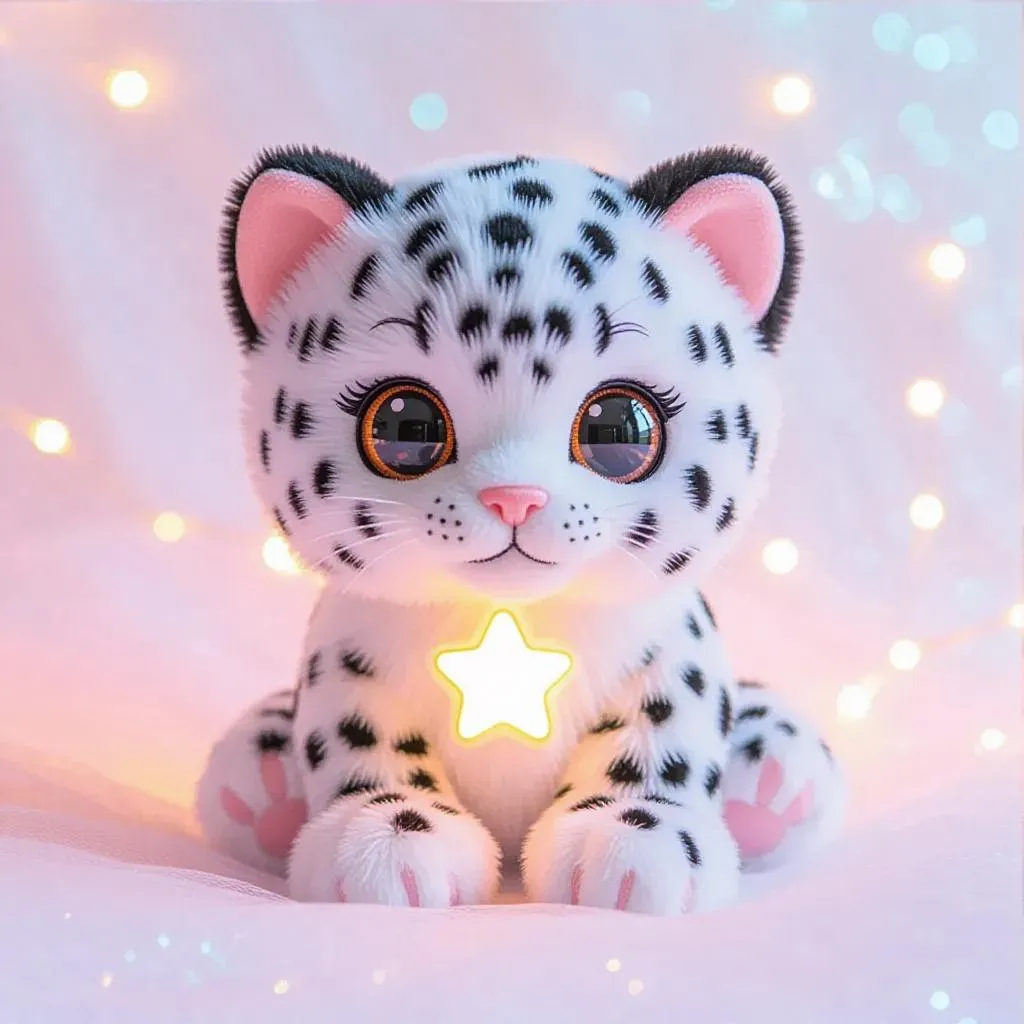Generate a whimsical Leopard Furby with star-petal patterns and a vibrant light-gray, light-pink, orange, white, and black palette using vivago.ai’s AI tools. Perfect for unique, creative visuals and professional-grade effects in AI art and design projects.