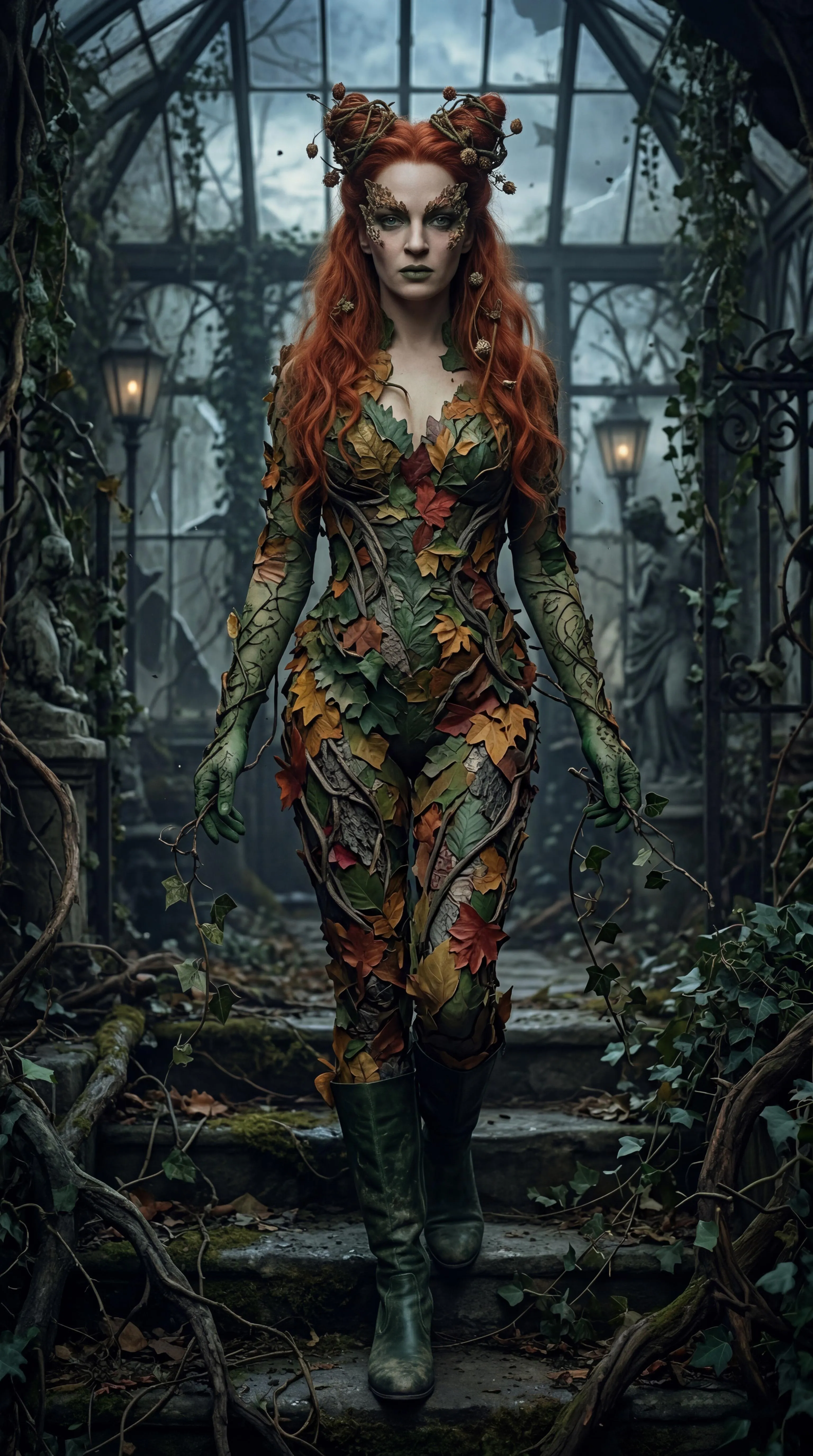 The art style from how Poison Ivy appears in the comics are translated into the realistic aesthetic of Uma Therman's live-action portrayal of her (from Batman & Robin), albeit to fit Tim Burton's much darker and more gothic tone for the Batman films instead of Joel Schumacher's much flashier and more flamboyant direction. There are no handcuffs being held up to her. No sensitive information or guidelines violating content seen or involved.