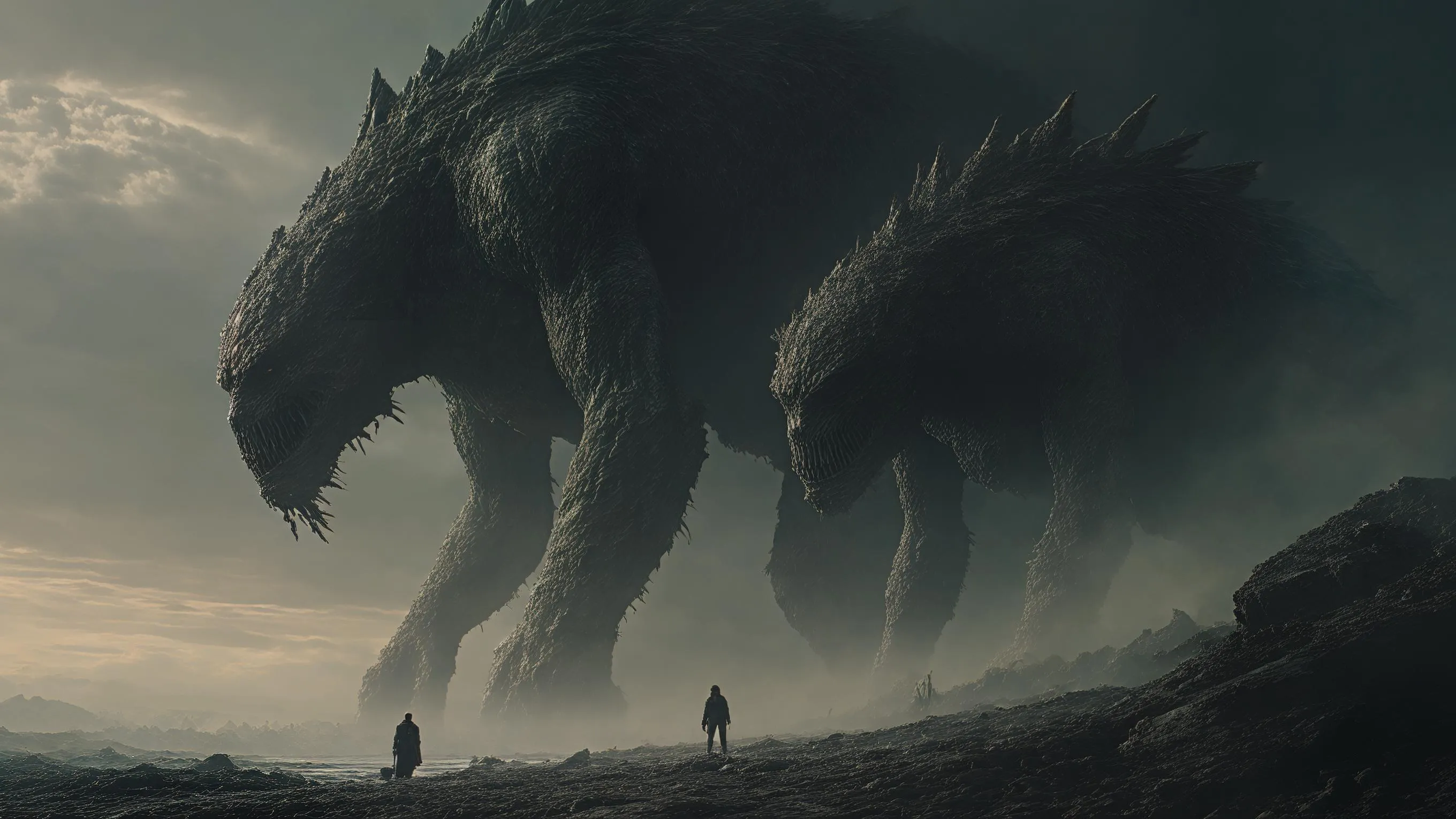 Transform text into haunting visuals with AI. Generate dark cinematic scenes of mythological giants fading into dust, leaving scarred, silent worlds. Experience professional-grade AI art generation for epic, atmospheric imagery with Vivago.ai's creative tools. Create stunning visuals from prompts.