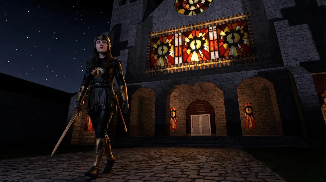 Generate a dark mechanist girl approaching a Gothic cathedral with AI. Transform text prompts into atmospheric, detailed images of steampunk characters in eerie settings. Create professional AI art blending mechanical limbs, shadowy figures, and imposing architecture effortlessly.