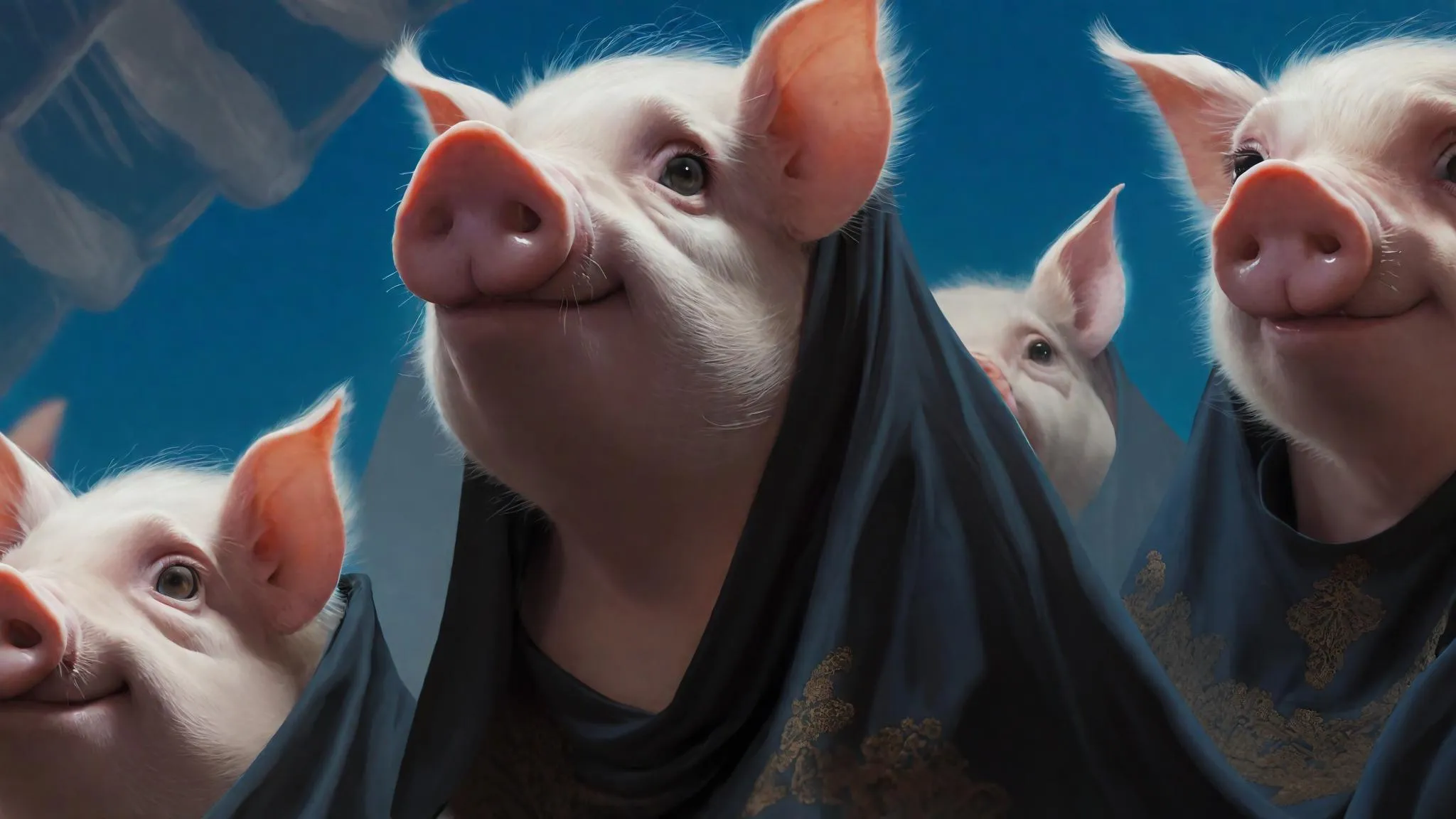 Generate a whimsical AI image of a flying pig journeying to a celestial paradise, meeting mythical figures. Vivago.AI transforms imaginative text prompts like this into stunning, surreal visuals using advanced AI generation. Create your own dreamlike digital art effortlessly.