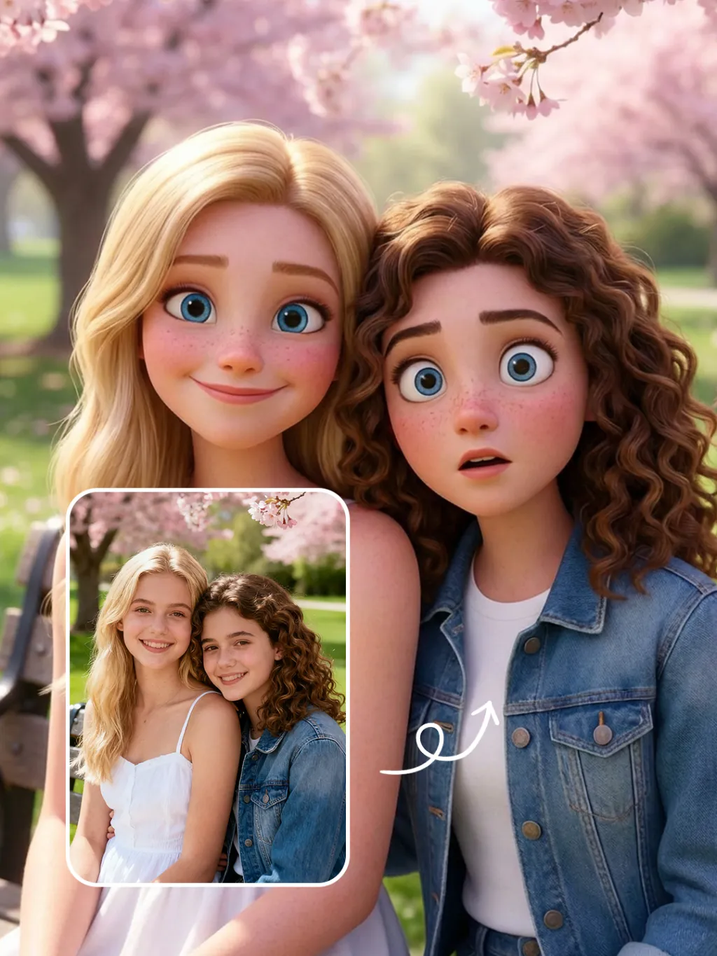 Transform the character in the image into a 3D animated character designed in the Pixar cartoon style and Disney animation aesthetic, featuring large, bright blue eyes, freckles on the cheeks, and expressive facial features (surprised/winking/smiling/confused). Boasting ultra-rich details, soft fabric textures and realistic skin shading, the character is created with Octane Render technology. The studio lighting is soft, casting gentle shadows.