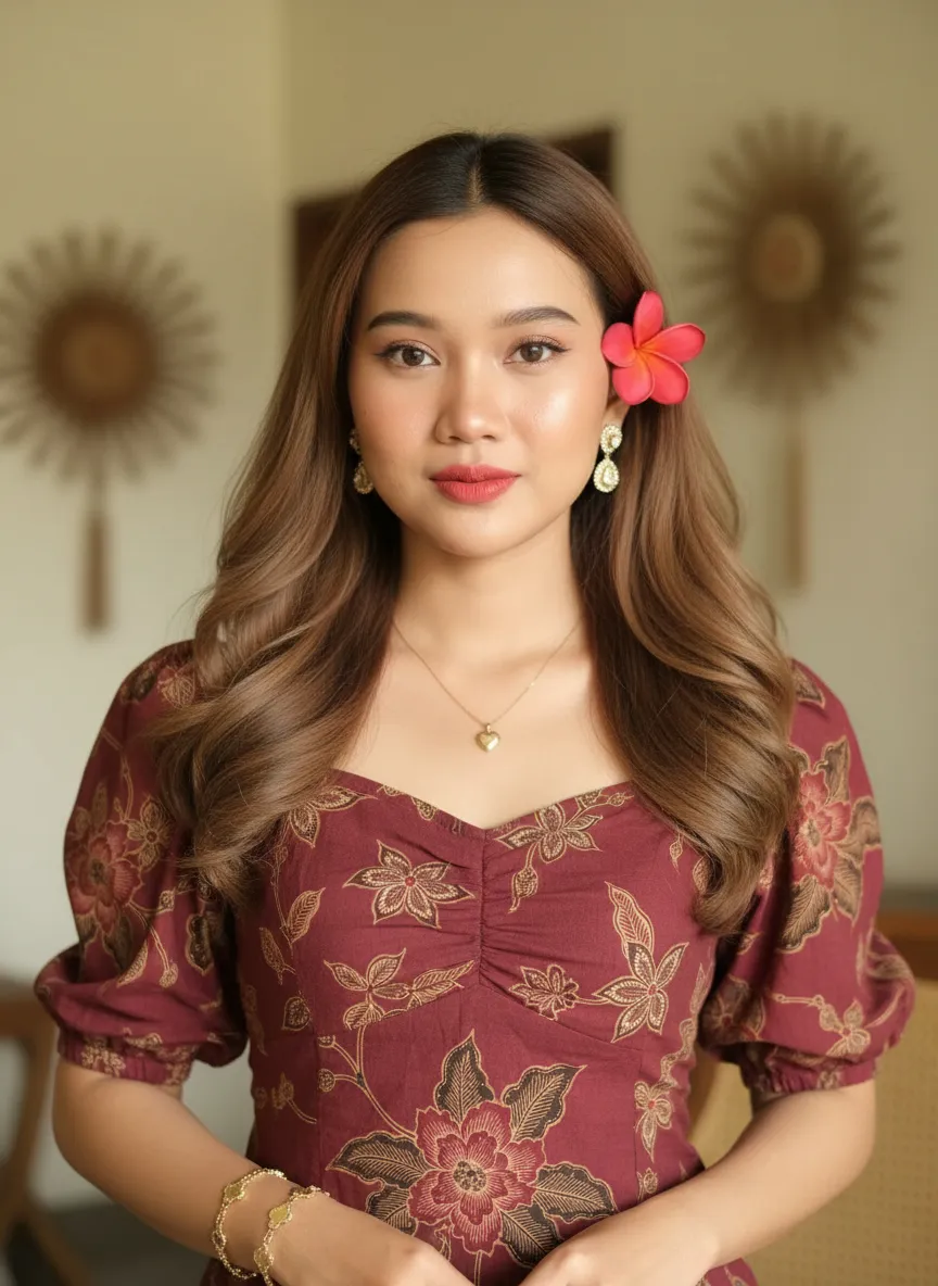 Strictly enforce facial feature lock: 100% identical to the first reference image, preserving every facial contour, skin texture, eye shape, lip shape, and youthful age with zero deviation. No artistic alteration allowed. Exact 1:1 copy of the original image, no creative interpretation or stylization permitted. A young East Asian woman with a cold, ethereal demeanor sits on damp bluestone paving, body angled 30° to the left, left arm folded across her torso, right hand gently gripping a large pale blue-white gradient flower, right elbow resting on her left forearm, left hand resting lightly on her right knee. She gazes at the camera with a detached, slightly lazy expression, lips pale pink and slightly parted. Her medium-length hair, a soft mix of dark brown and black, is adorned with large, ruffled light blue-purple gradient flower accessories on the right side, with a few strands of hair gently blowing in the breeze. She wears:A multi-layered Miao silver collar with delicate dangling silver beads. A wide, intricately carved silver bracelet on her right wrist. A slim silver bracelet on her left wrist. A strapless top with a crisp white base and bold dark blue swirling cloud motifs. A floor-length pleated skirt in a sharp black, white, and royal blue geometric pattern, with horizontal stripes and wave details on the hem Background is an exact replica of the original Dong-style wooden covered bridge: dark grey tiled roof, polished wooden pillars, distant lush green trees, and hazy mountain peaks under a soft, overcast sky. Precise lighting & tone lock (1:1 match to original):Soft, diffused morning backlight with a gentle, airy halo that wraps around the subject’s hair and shoulders, creating a subtle glow on the damp bluestone ground. The exact color palette of the original image is strictly preserved: cool, low-saturation tones dominated by crisp white, deep navy blue, and matte black, with a soft focus filter that gives the image a delicate, dreamlike cinematic quality. No over-saturation, color shifts, or harsh shadows are allowed. All elements must match the original image pixel-for-pixel; no creative additions or changes permitted.