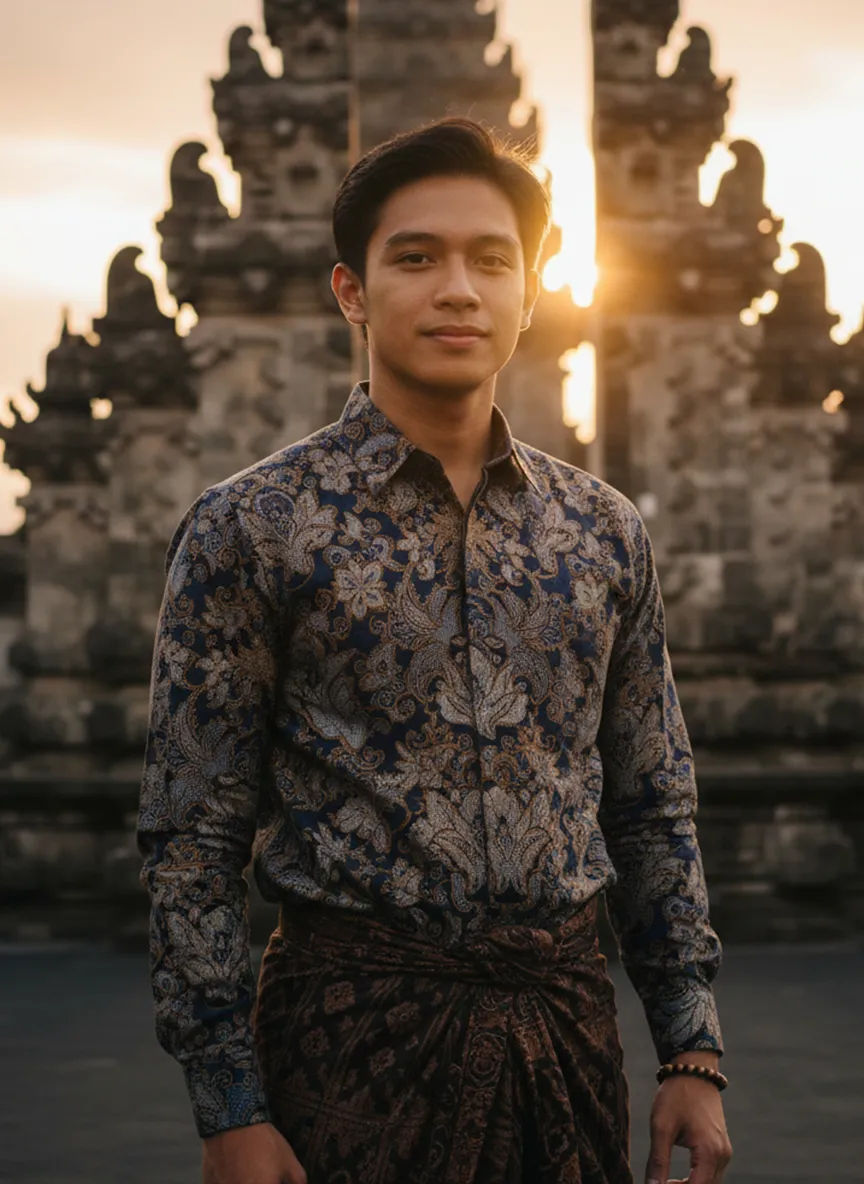 The identity of the uploaded portrait is strictly locked (retaining facial contours, authentic Indian skin tone, hairstyle and age) – the portrait identity is preserved in its entirety, along with the Indian woman’s original natural features. A close-up bust composition is adopted with a head-to-body ratio of approximately 1:2, ensuring her facial expression and demeanor are clearly visible. She has a delicate, soft and graceful face with a vermilion red bindi on her forehead. Her jet-black long hair is styled into a traditional bun, adorned with a marigold garland and gold hair ornaments. She wears an exquisite gold nose ring, necklace and earrings, exuding a faint, gentle sacred glow all around her. Draped in a traditional sari in an elegant combination of ivory white and vivid red, the sari is edged with intricate golden auspicious patterns; its lightweight, flowing fabric flutters softly in the gentle breeze. She kneels on the clean stone slabs in front of the temple with both knees, her body tilting slightly to the left, her face fully exposed to the camera. Her hands rest naturally on her knees, her head tilted slightly upward, her eyes clear and brimming with piety as she gazes intently toward the golden dome and deities of the temple, a serene smile playing on her lips, her posture dignified and solemn. Scene & Background: A South Indian-style temple (such as the Tirumala Tirupati Balaji Temple) in the early morning, where the golden temple roof glistens brilliantly in the rising sun, and the architecture is carved with elaborate and intricate deities and patterns. Colorful marigold garlands hang in front of the temple, and lit brass oil lamps are placed on the ground. In the background, several devotees in traditional attire and musicians playing classical Indian instruments can be seen, creating a sacred, solemn atmosphere infused with a festive spirit. Soft morning sunlight streams down from her side and back, casting a warm golden halo around her figure. The interplay of light and shadow on the temple architecture enhances the layering and sacredness of the frame; the hems of her sari and the tips of her hair shimmer with a faint glow. The warm radiance of the oil lamps blends with the ambient light, weaving an atmosphere of warmth and devoutness. Shot at 8K ultra-high definition with the effect of a professional portrait lens, the image features true and delicate skin texture, natural pores and fine hair details, rich and pure colors, and soft, non-glaring lighting. It presents a realistic film-grade portrait texture, highlighting the sacred and devout ambiance of the religion.
