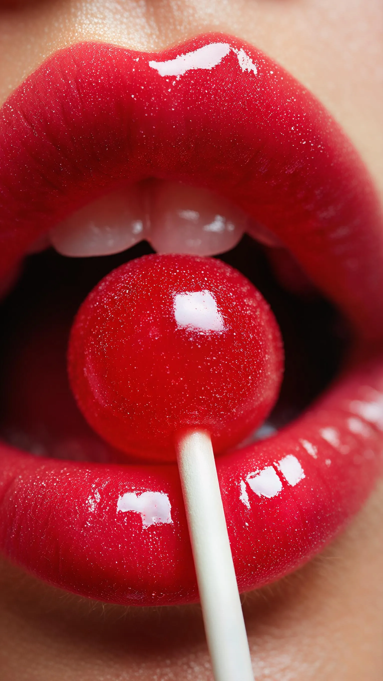 Create hyper-realistic, ultra-detailed macro candy-core visuals with vivago.ai. Craft AI images featuring glossy red lips with a wet glass shine holding a red mochi lollipop. Achieve extreme sharp focus, plump textures, and studio lighting effects with creamy bokeh blur. Transform prompts into vivid, professional AI art.
