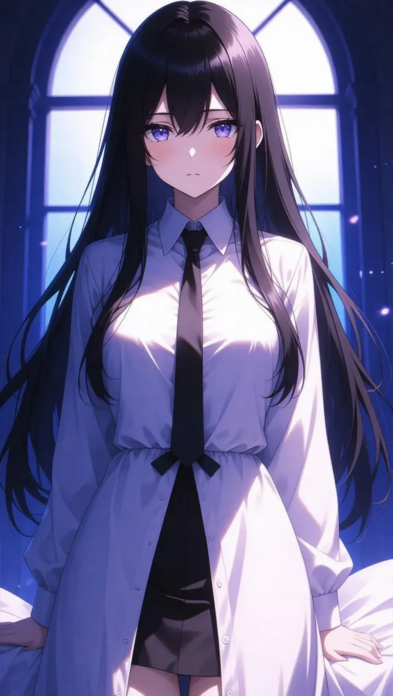 Generate a haunting AI horror anime scene: pale ghost girl in tattered patient gown emerges from shadows, long black hair framing her emotionless face. Perfect for vertical 9:16 formats, blending cinematic horror aesthetics with AI-generated eerie visuals. Create spine-chilling content effortlessly using vivago.ai's professional-grade editing tools and anime-inspired effects.