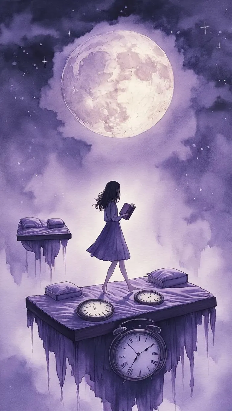 Experience a surreal anime-inspired scene of a girl walking barefoot on a floating island of beds and clocks. Witness cinematic watercolor visuals with a starlight-flickering book, tearing paper moon, and dissolving memories. Vivago.ai's AI tools transform poetic prompts into dreamlike animations with lavender ink washes and fog-laced contours. #Anime #Cinematic #Watercolor