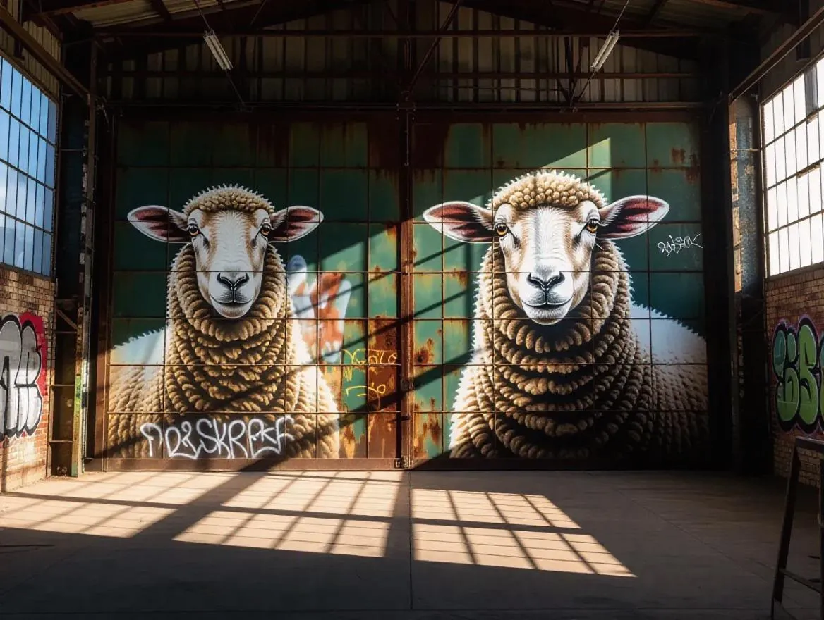 A group of tiny, thumb-sized workers is diligently cleaning a polished, bronze sedan, which is the centerpiece of the image. The car is parked on a smooth surface, possibly in a mall parking lot, and has shopping bags on its side, indicating a shopping spree. The miniature workers are gathered around the car, some reaching up high on the roof while others are inspecting the tires. They appear to be focused on their task, using tiny sponges and paper towels to scrutinize every detail. The surrounding environment features a bright, sunny sky, which casts a luminous light over the scene. Nearby stores can be seen in the background.