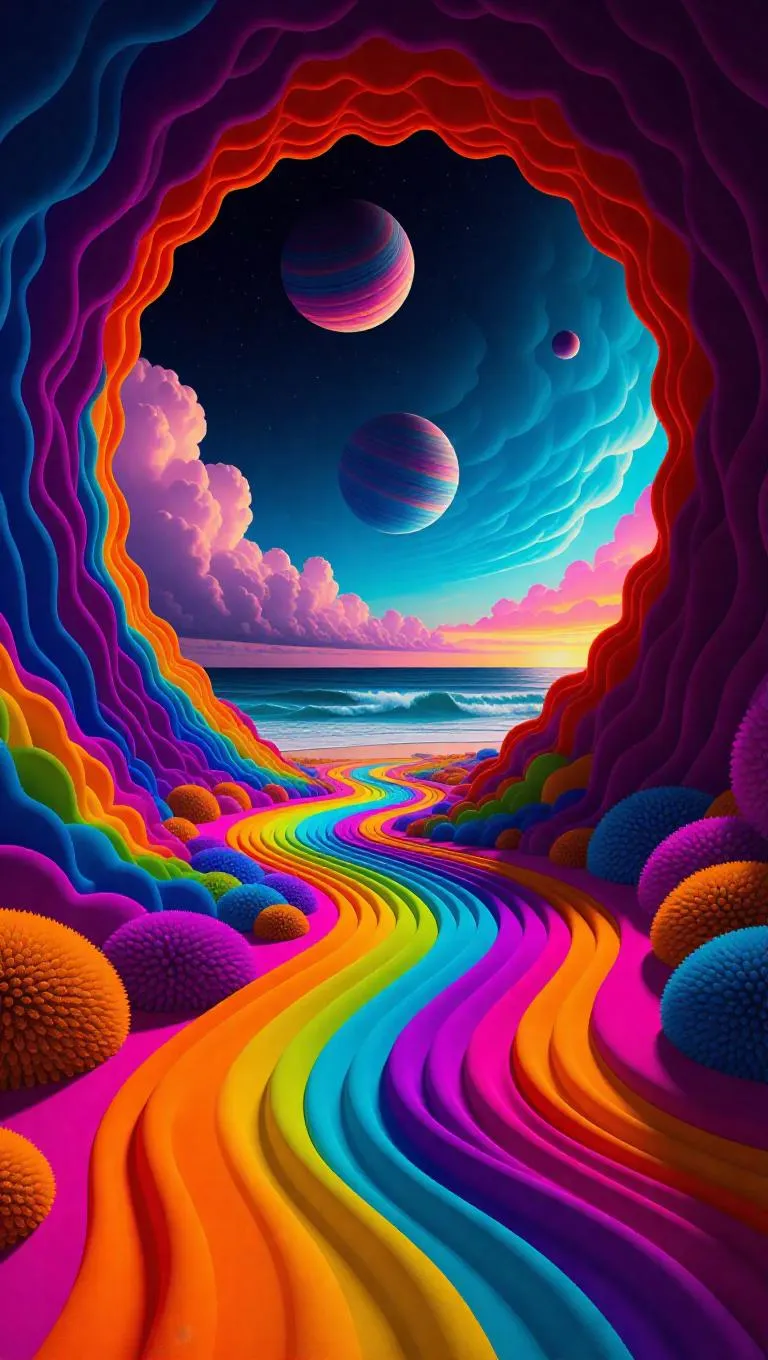 Vivago.ai transforms prompts into surreal AI art with psychedelic colors, liquid cartoons, and Persian carpet details. Explore abstract layers, Eric Carle-inspired nature, cosmic holes blending beachscapes with outer space. Create vibrant, squint-eye-detailed visuals using AI effects for professional-grade, otherworldly imagery.