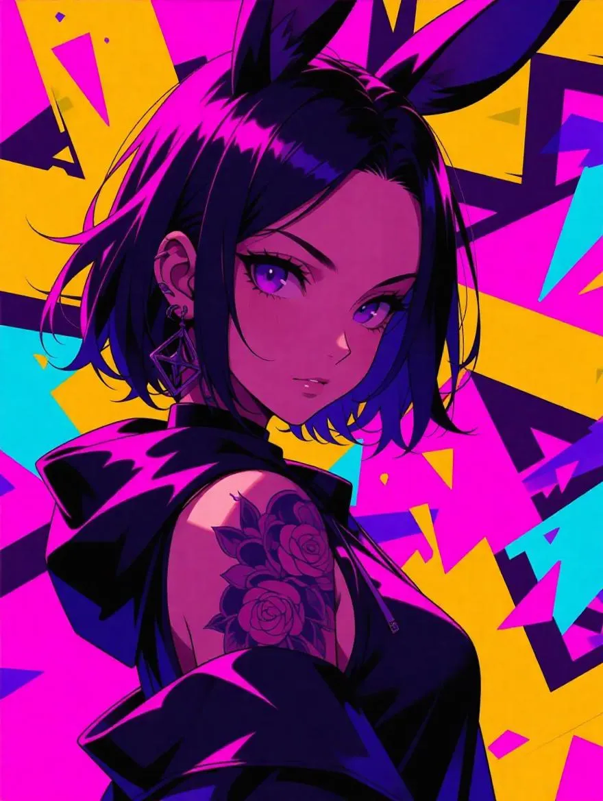 Create vibrant AI anime murals with VivaGo.ai. Generate colorful anime girl art featuring purple-pink-black palettes and whimsical rabbit ears. Transform text prompts into dynamic character designs or street-style murals. Perfect for anime fans, digital artists, and content creators seeking eye-catching, customizable AI-generated artwork with professional editing tools.