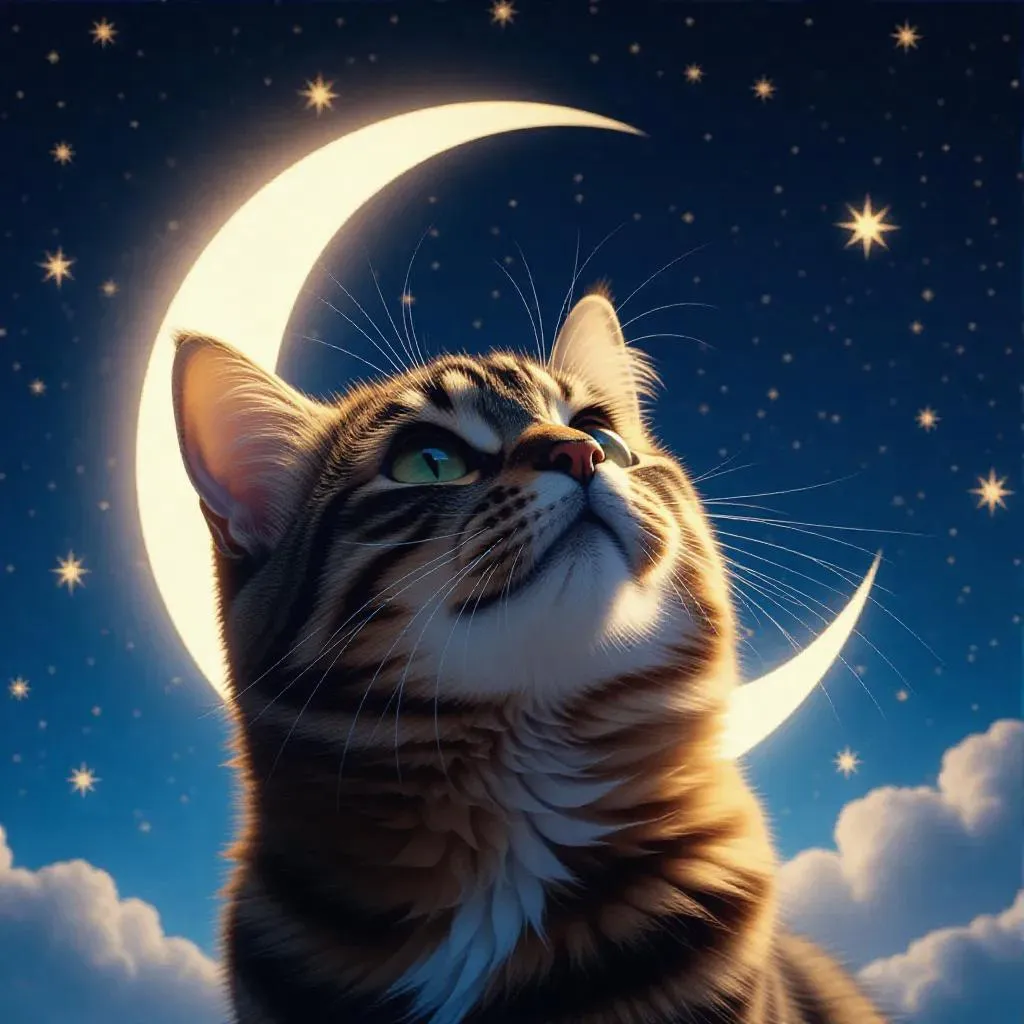 Generate an adorable AI-rendered cat against a celestial moon and stars backdrop with Vivago.ai. Transform text prompts into captivating visuals using our curated effects and editing tools for professional, dreamlike creations instantly. Free AI image generation online.