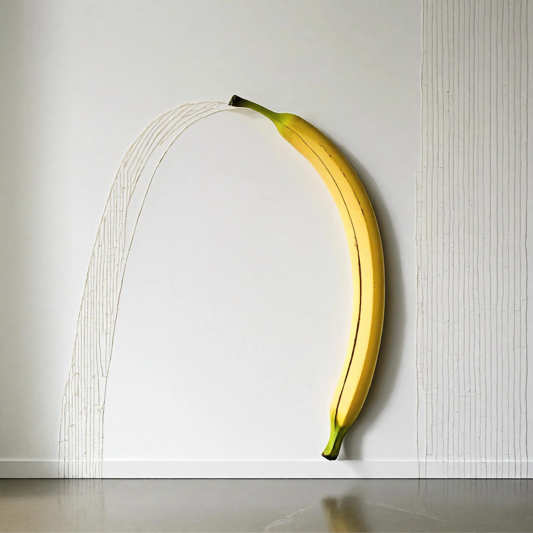 Transform your vision into AI-generated art with this banana installation on a whitescale wall, secured by American tape. Leverage Ambient Occlusion for realistic shadows and Golden Ratio Composition for balanced aesthetics. Elevate creative projects with professional-grade AI effects and precision editing tools on vivago.ai.