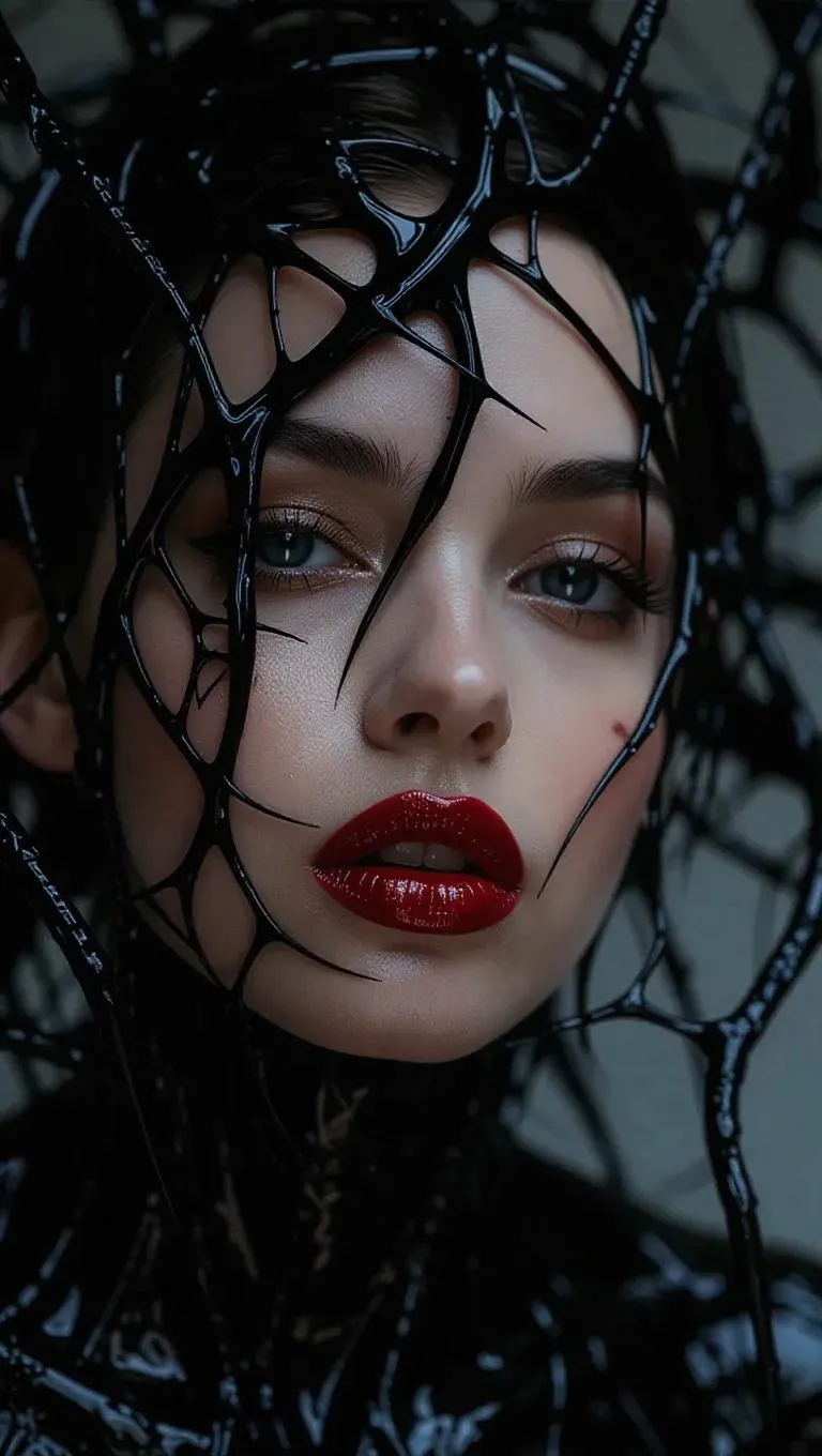 Transform into a dark symbiote-human hybrid with AI-generated realism. Vivago.ai crafts striking 3D renders of symbiotic flesh, venom claws, and consuming tendrils merging with a brunette figure. Explore hyper-detailed dark lips, half-absorbed features, and organic textures via advanced AI image tools for professional-grade horror/fantasy visual storytelling.