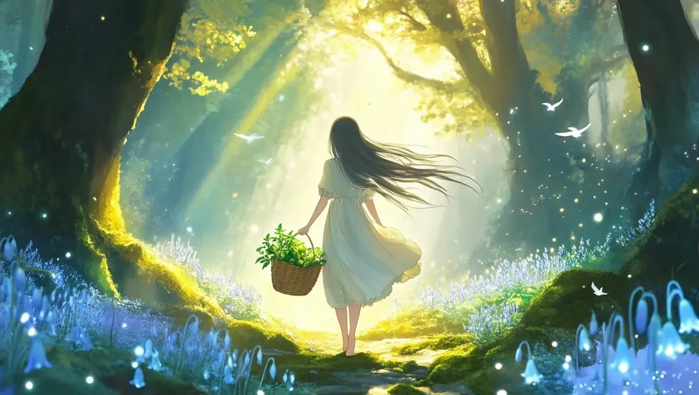 Create enchanting Ghibli-inspired watercolor anime art with Vivgo.ai—generate a delicate herbalist girl in linen amid bioluminescent forests. Sunbeams, glowing bluebells, spirit-lights, and trailing birds blend hand-painted textures, pastel skies, and intricate nature details. Perfect for whimsical storytelling, cinematic scenes, and luminous storybook compositions through AI-powered anime artistry.