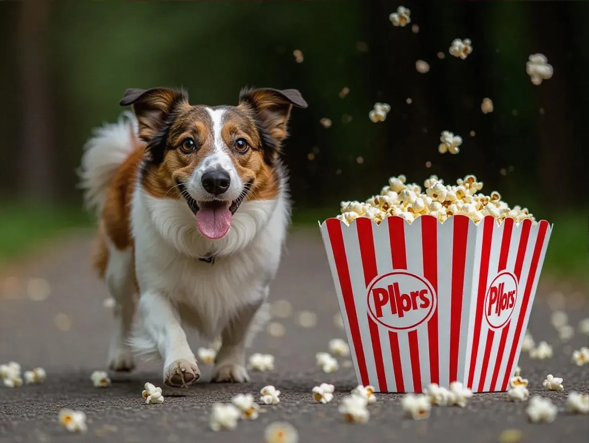 Generate a whimsical AI image of a dog walking with popcorn using vivago.ai. Easily turn quirky text prompts like 'A dog walking with popcorn' into dynamic, creative visuals with our powerful AI image generator. Explore fun themes and unique ideas effortlessly.