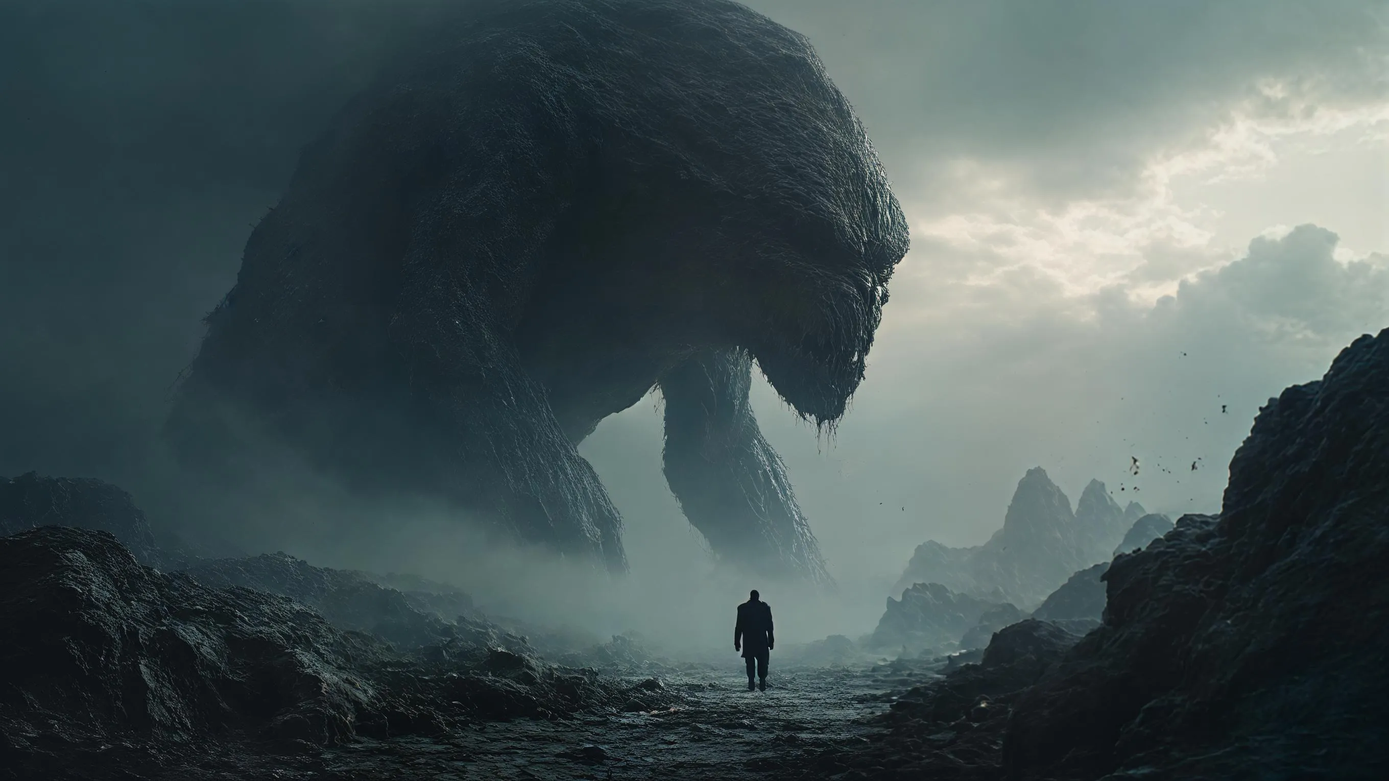 Transform text into haunting visuals with AI. Generate dark cinematic scenes of mythological giants fading into dust, leaving scarred, silent worlds. Experience professional-grade AI art generation for epic, atmospheric imagery with Vivago.ai's creative tools. Create stunning visuals from prompts.