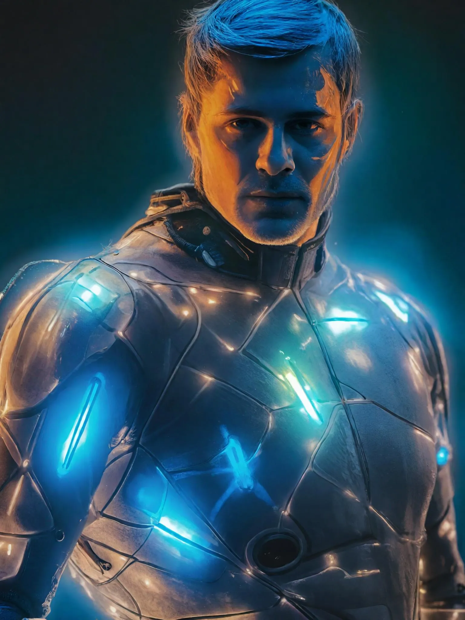 Generate luminous astronaut armor with cerulean bioluminescence, neon circuitry, and holographic HUD displays using AI. Craft futuristic exoskeleton designs featuring prismatic distortions, hydraulic details, and starscape backdrops. Elevate sci-fi visuals with Vivago.ai's AI-powered creative tools for cosmic, high-tech imagery.