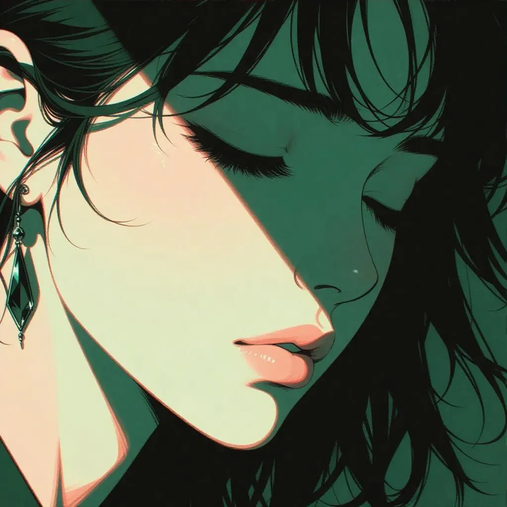 Create nostalgic anime art with dark emerald tones, a neo-pop aesthetic, and intricate details. Generate moody, exquisite portraits evoking 1980s melancholy and timeless beauty using AI tools. Perfect for evocative wallpapers with soft shadows and directed emotion.