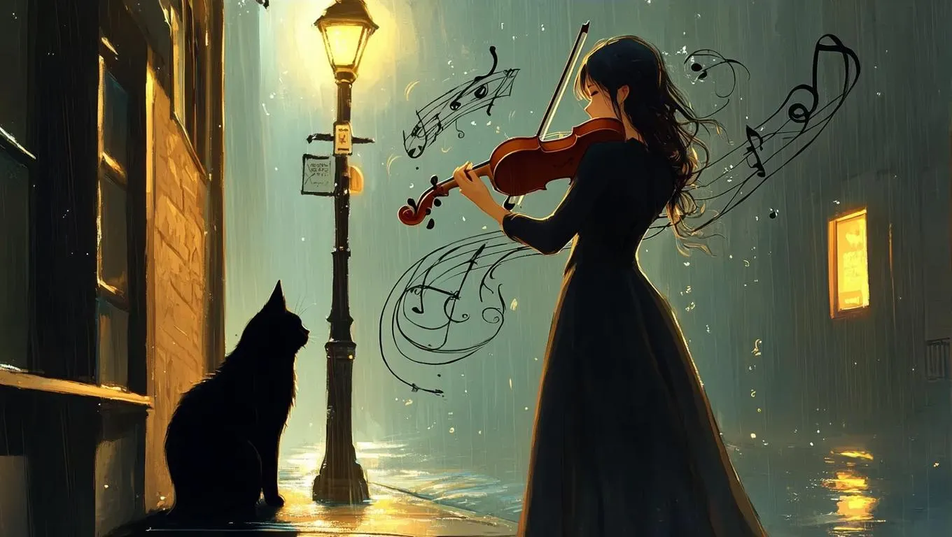 Create stunning AI-generated anime art with cinematic watercolor effects. Craft ethereal scenes like Erin's violin melody visualized as swirling ink, illuminated by streetlamp glow. Design atmospheric moments with vivago.ai's tools for music-inspired visuals, delicate lighting, and anime aesthetics—perfect for evocative storytelling.