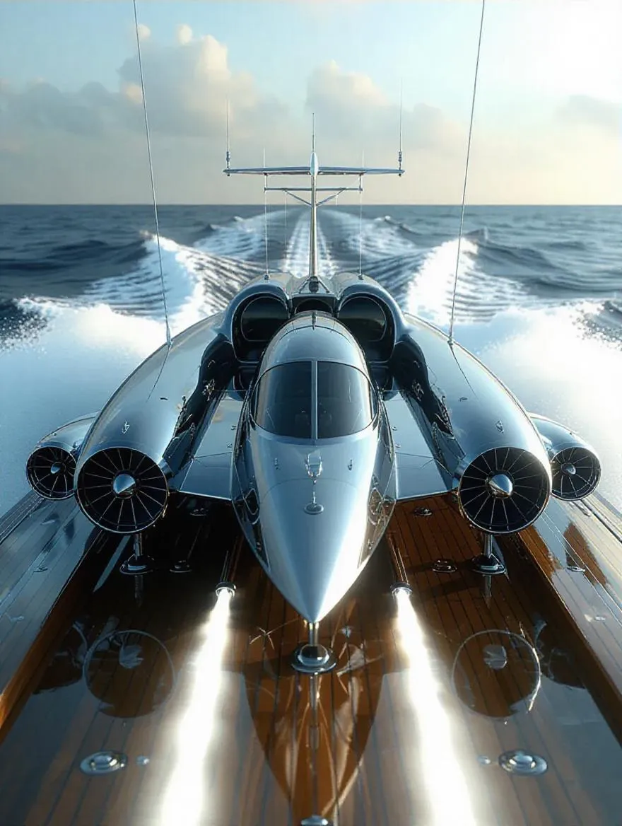 Generate stunning AI images of futuristic flying yachts with jet propulsion engines using vivago.ai. Create modern yacht designs effortlessly from text prompts. Experience professional-grade visuals and curated AI effects for revolutionary watercraft concepts.