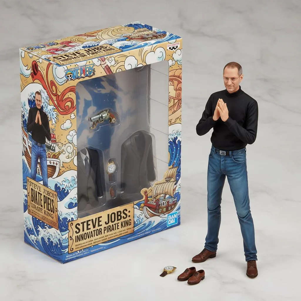 Transform photos into collectible One Piece anime action figures. AI generates dynamic characters with miniature accessories in isometric figure boxes plus realistic, detailed renders outside the packaging. Create your custom anime figure collection with detailed accessories & professional presentation.