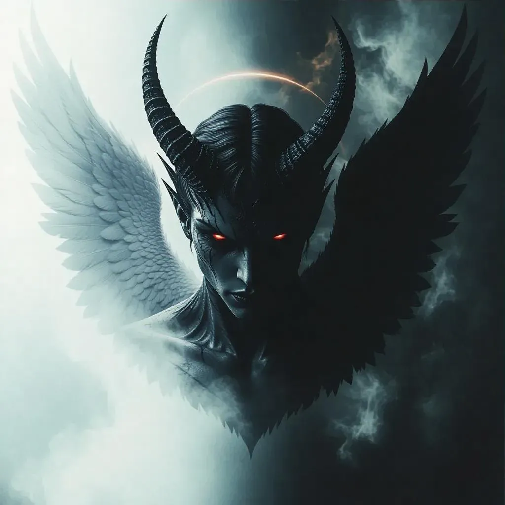 Create a mystical hybrid creature blending demonic and angelic features with AI-generated precision. Experience striking contrasts of dark horns, glowing eyes, and luminous wings against celestial, shadowy landscapes. Perfect for surreal art enthusiasts seeking cinematic lighting, intricate textures, and balanced compositions. Transform prompts into professional visuals using Vivago.ai's advanced AI tools for ethereal, high-detail imagery.