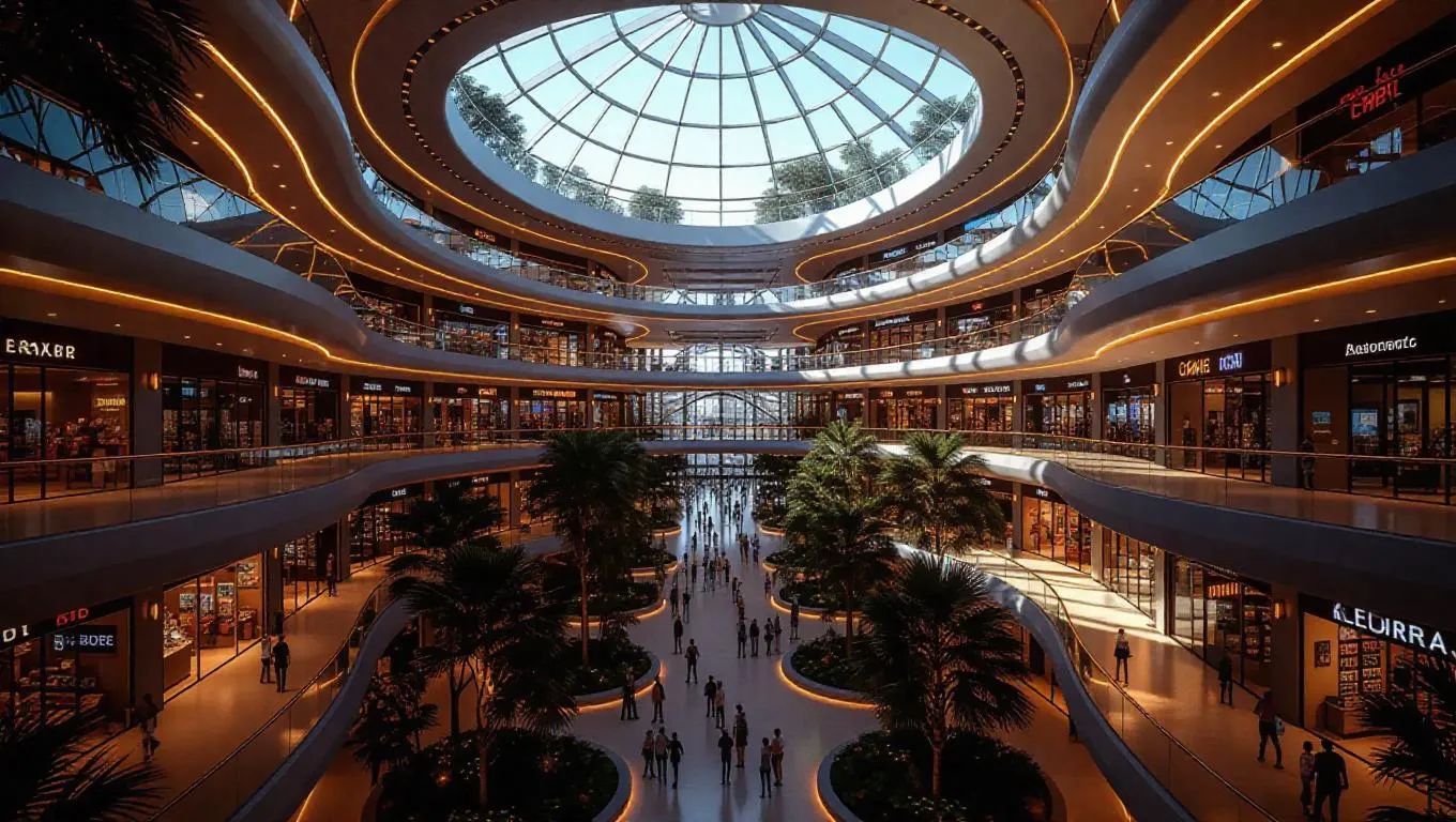 Create stunning AI-generated images of a 50-story amusement park with modern indoor/outdoor design. Features a massive central atrium lined with thrilling rides, interactive exhibits, and arcade games. Bathed in natural light from a grand glass dome, elegant curved balconies offer breathtaking views. Perfect for all ages. Explore limitless AI creativity with VivaGo.ai.