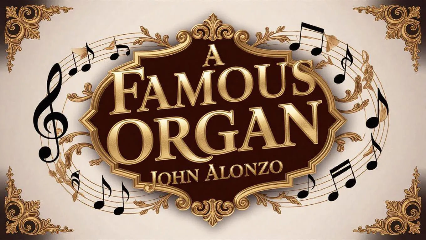 Craft a J.S. Bach-inspired, gold-themed AI album cover for **John Alonzo**'s **A Famous Organ**. Elevate engagement with bold, luxurious visuals blending Baroque elegance and modern AI artistry—maximizing viral appeal and revenue potential through striking, shareable design.