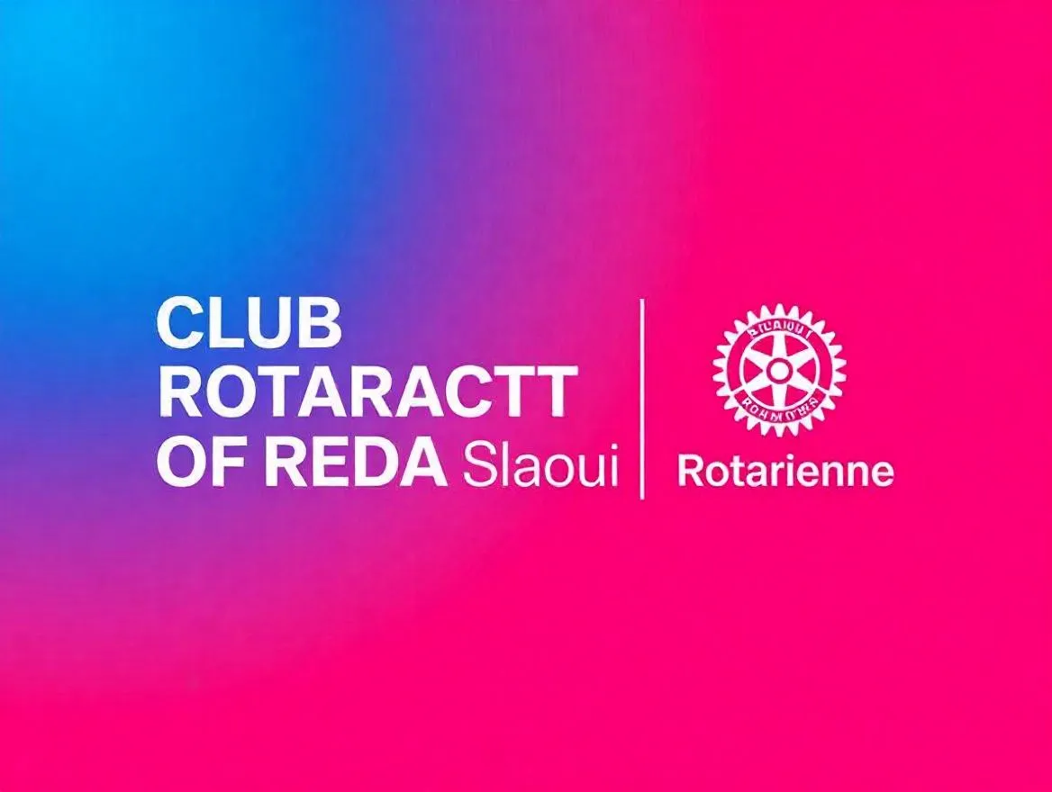 I want logo of “Club Rotaract of Reda Slaoui” The background i want it blue degre to pink as a shadow and i want the name in middle with the logo of rotarienne i want it the same logo exactly of them on the right