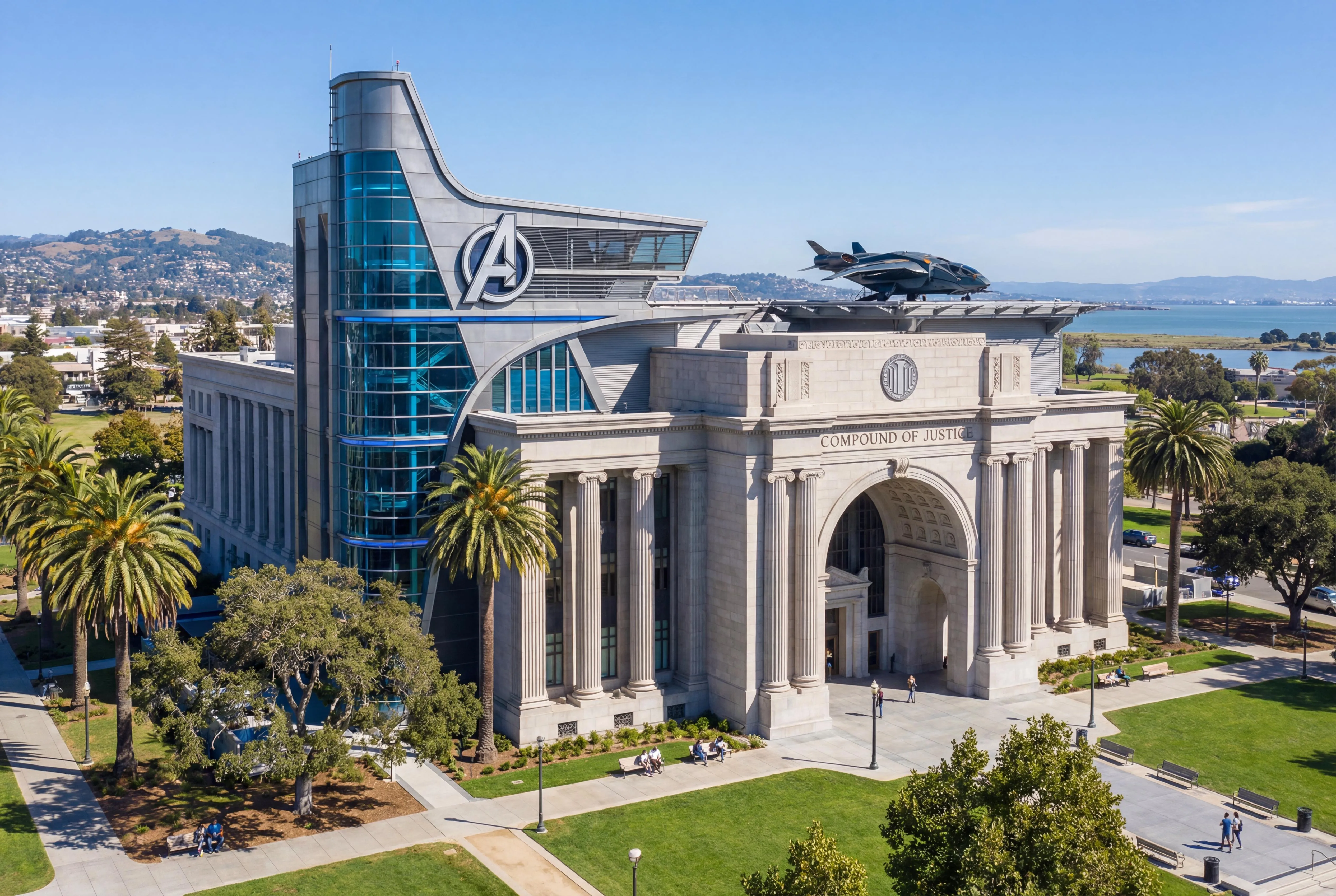 The Avengers Compound and the Hall of Justice interchangeably combine into each other together as one to form the Compound of Justice, located in Lowell Park, Oakland, California.