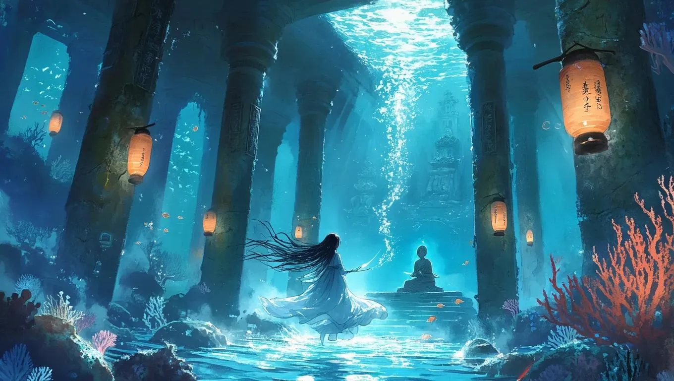 Experience AI-generated anime art with this ethereal watercolor scene of a young girl drifting through a sunken temple. Cinematic visuals blend shimmering blues, mystical symbols, and sacred ambience as she encounters the slumbering Tide-Speech Watcher. Create mythic, reverent moments with Vivago.ai—transform prompts into mesmerizing watercolor narratives, lantern-lit depths, and hauntingly serene anime aesthetics. #Cinematic #Watercolor #AIArt