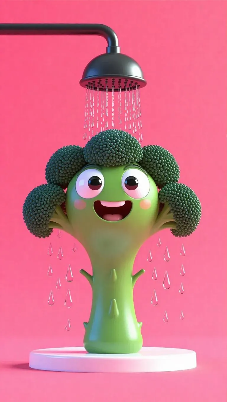 Generate a 3D broccoli character animation taking a refreshing shower with VivaGo AI's creative tools. Transform text prompts into professional animated visuals using our AI-powered video generator. Perfect for unique storytelling and whimsical content creation.