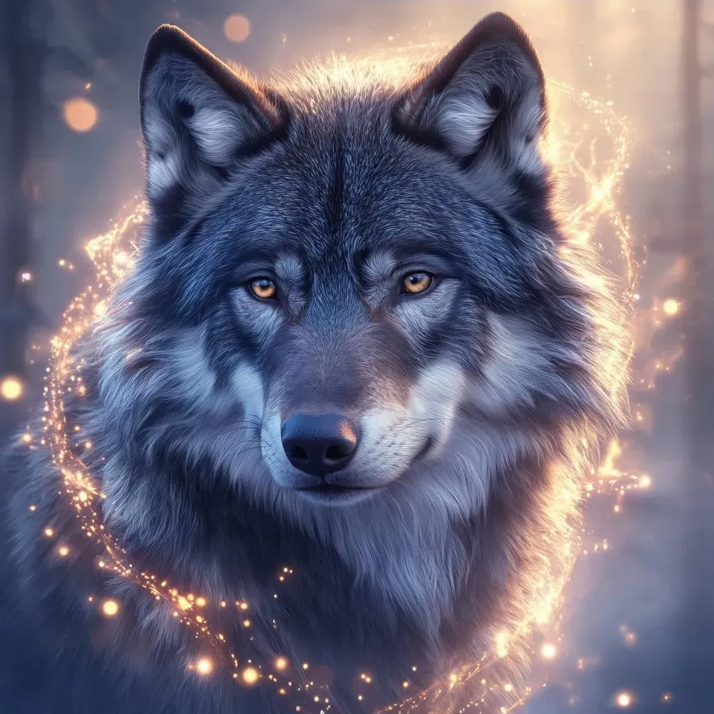 Majestic Timberwolf hyperrealistic 3D portrait with captivating friendly gaze, mystical shimmering lights, and ultra-detailed furry texture. Atmospheric gradients, soft mist, and magical aura enhance its wise, mysterious charm. Perfect as elegant wall art combining natural beauty, mystic elegance, and AI-powered creativity. Ideal for spaces seeking hyper-quality wildlife visuals with dreamlike, ethereal depth. #Hyperrealism #3D #Portrait