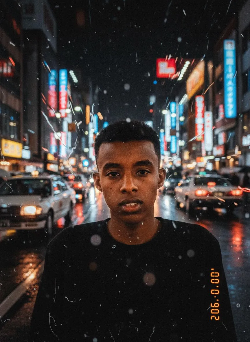 Use the exact same facial features, gender, and age as the uploaded image.photorealistic action photograph: a figure with thick, voluminous black afro hair, wearing a brightly colored tropical-patterned short-sleeve shirt, frayed denim cutoff shorts, and red flip-flops, riding a bright red classic Vespa-style scooter at breakneck speed on a dusty rural dirt road. The vehicle has a slight tendency to tilt and lean into a turn, while the figure leans forward aggressively, with large clouds of brownish-yellow dust billowing from the wheels. The expression is one of extreme panic and urgency—eyes wide open, mouth agape, face contorted with frantic determination to escape at all costs. Far down the road, behind the vehicle, three tan-colored fierce dogs are in relentless pursuit, tongues lolling, paws kicking up dust, bodies low to the ground as they close in, nearly catching up but not yet touching the scooter. Dynamic motion blur is applied to the wheels, background, and the dogs' legs to emphasize speed, with dust particles swirling in bright tropical daylight. The backdrop features lush green terraced rice paddies, swaying palm trees, and a bright, hazy tropical sky. Shot with a 32mm wide-angle lens from a low angle to amplify tension and the sense of imminent danger. 8K resolution, ultra-fine details, cinematic action shot, with an overall atmosphere of chaos, high energy, desperate and urgent escape, and intense suspense and urgency.Shot from a low angle, with dynamic motion blur, captured using a Sony A7R IV camera paired with a 35mm f/1.4 lens.