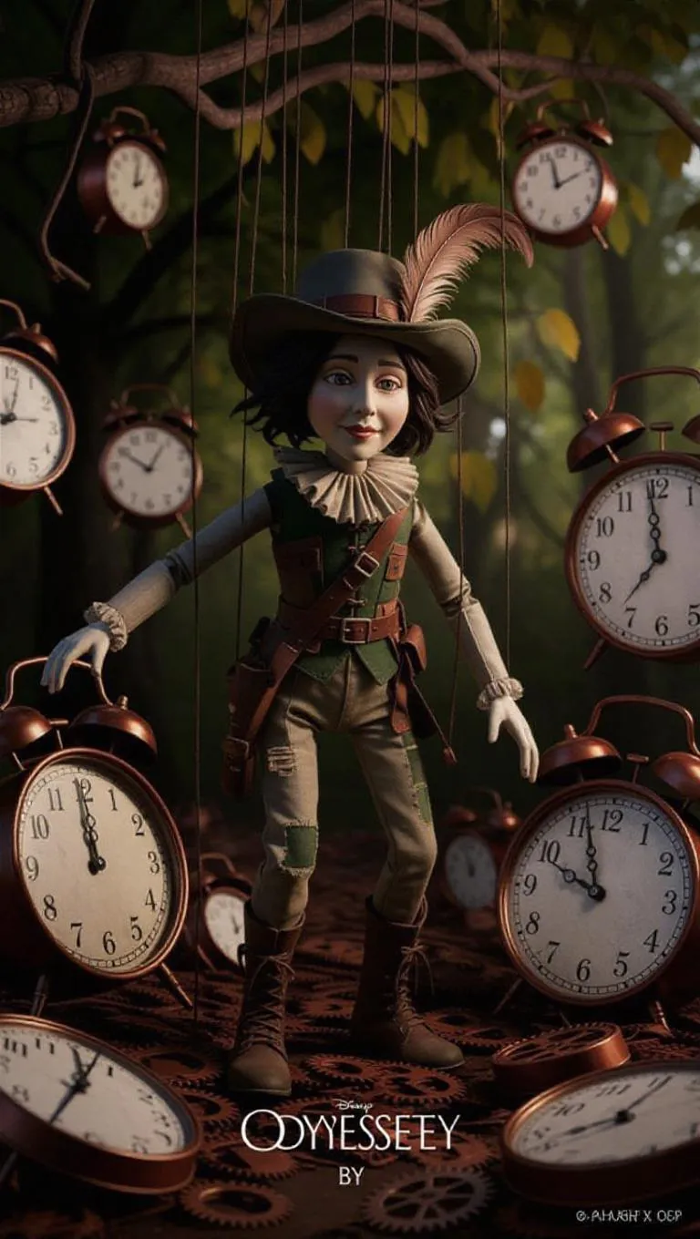 AI-generated surreal art: Craft mystical puppet odysseys in chaotic clockwork forests with VivaGo.ai. Experience hyper-detailed CG visuals blending dark green tones, dynamic textures, and eerie copper-silver gears. Octane-rendered scenes feature wind-swept puppets amid twisted trees and fragmented timepieces, perfect for fantasy storytelling with professional-grade AI image generation tools.