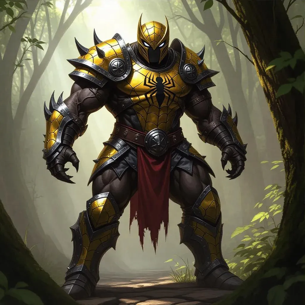 Generate a fierce spider-armored Barbarian with striking yellow, brown, silver, and red-brown hues using AI. Perfect for fantasy art, game design, or concept visuals. Vivago.ai crafts intricate armor textures, organic-webbed details, and dynamic lighting for professional-grade character designs. Elevate your creative projects with AI-powered precision.