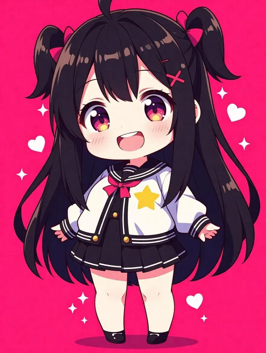 (very chibi girl:1.5) with huge boobs,mischievous smile,round cheeks