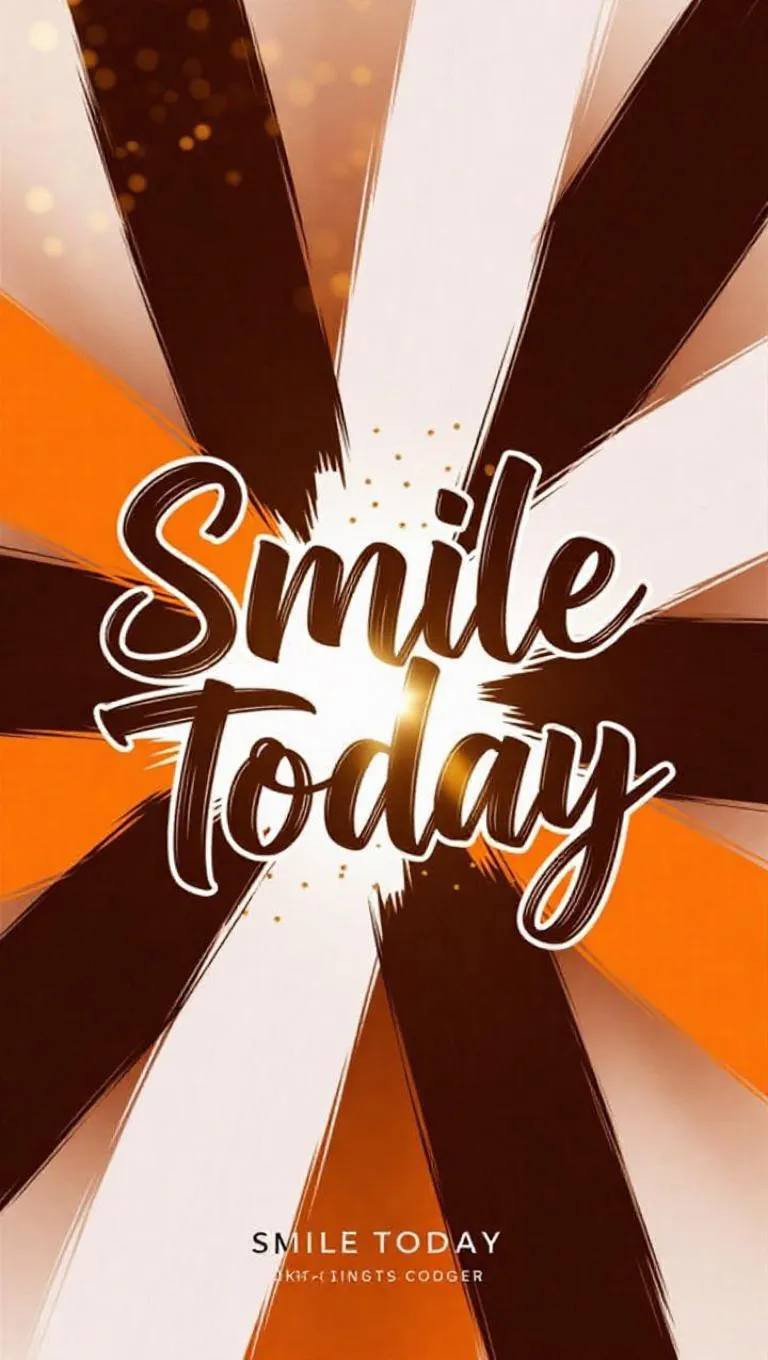 Generate AI-powered 32K ultra-HD handwritten calligraphy "今日宜微笑" with thick brush textures and warm brown-orange gradients. Features natural ink dispersion, golden light particles, and soft 0.3px shadows on 350dpi paper-textured background. Midday lighting with Tyndall effect enhances the 20% text composition and 80% negative space, ensuring professional-grade digital art with naturalistic brushstrokes and airy aesthetics.